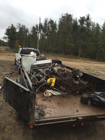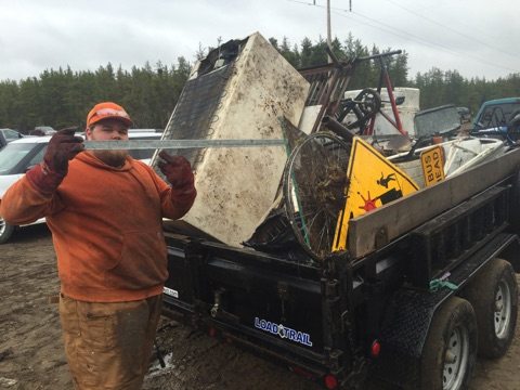 “We picked up two 20-yard roll out bins,” Cole says the bins were full to the top, “we had to jump on them to close the lids; that’s how full they were.” That was only the beginning of what was found in the pits. “We had three dumpsters on top of that and then four full trailers of appliances and metal.” In eight square kilometres the group found 12,000 pounds of garbage.