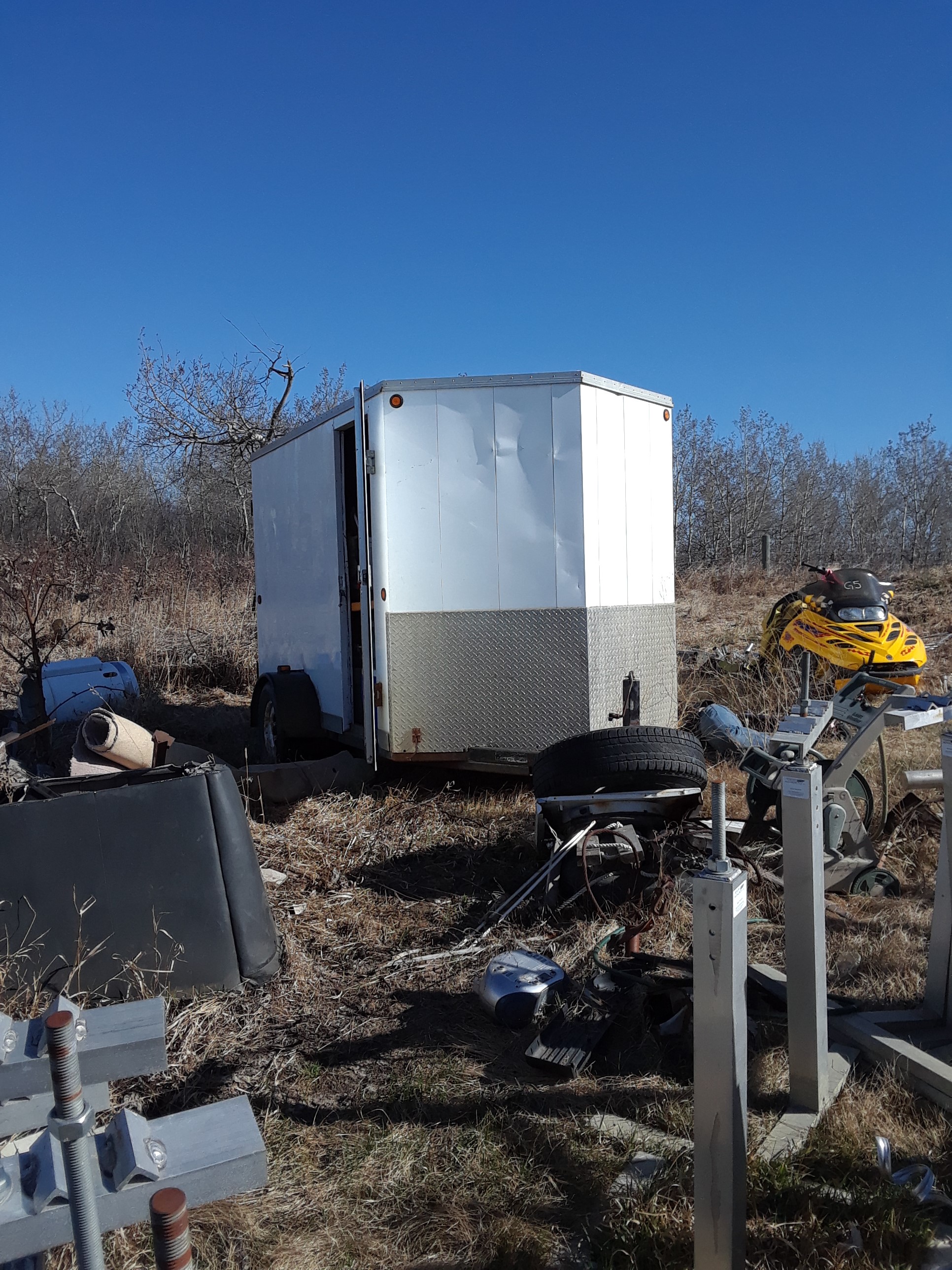 On April 25, 2019, Two Hills RCMP along with members of the Vegreville RCMP, RCMP Auto Theft Unit, St. Paul Traffic, and the Eastern Alberta Rural Crime Reduction Unit (EADRCRU) dismantled a rural ‘Chop Shop’ in Two Hills County. Search warrants were executed at three rural properties north of Two Hills. Several stolen trucks, utility trailers, ATVs, travel trailers, generators, and other tools were recovered.