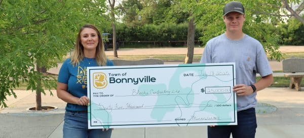 Photo: Town of Bonnyville Mayor Elisa Brosseau presents a cheque [...]