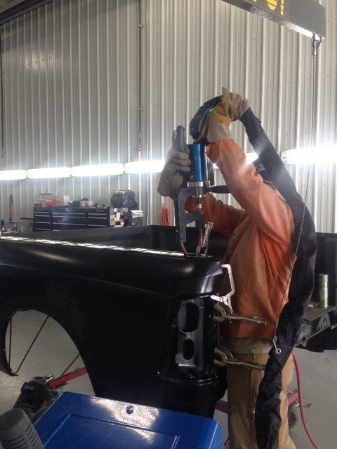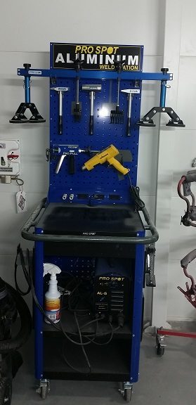 Repairing aluminum comes with its own set of rules. It involves the vehicle to be secluded from all other repairs in a completely clean environment. Exposure to other repairs can compromise the consistency of the aluminum. Aluminum panels require different fasteners and repair materials, it’s not your standard vehicle built out of sheet metal. There’s a different type of welder required and a certain rivet gun, “we’re one of the few shops in the area equipped with the technology and the ability to fix new Ford aluminum body trucks,” Brad states.