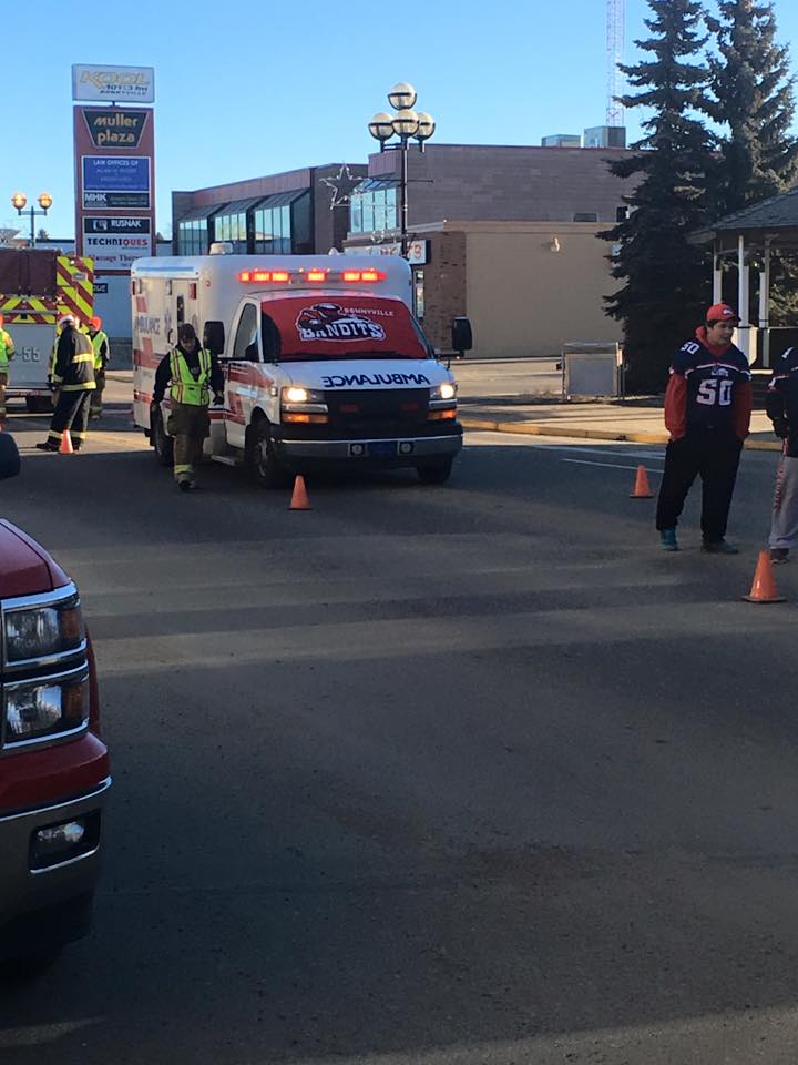 On Saturday, December 5th, Bonnyville Regional Fire Authority, Bonnyville EMS, RCMP, Victim Services, and the Bonnyville Bandits and Renegades football clubs braved the cold and conducted a very successful Charity Check Stop on main street in Bonnyville. The volunteers raised just over $6000 for Victim Services and their Facility Dog “Odie”. Also raised were 12 boxes of food for the local food bank and 6 boxes of toys which will be turned over to Santa’s Elves.