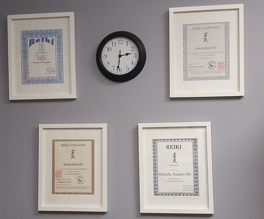 After attempting to re-enter the financial field, after her major health scare, Melodie’s body kept telling her it wasn’t right. She’d open her laptop to start work and a panic attack of sorts would come on; every time, without fail. Finally, she stepped back from that line of work and searched out her true calling… or it found her. An off-chance conversation with a friend led her to a psychic reader, who told Melodie she was a healer. Things started to click from there, Melodie’s sister is a Reiki practitioner and she had gone to her sister for treatments and loved it. She started researching it more and found a teacher in the area from whom she could learn the skill. Melodie also used a teacher out of Edmonton to further develop her skills.