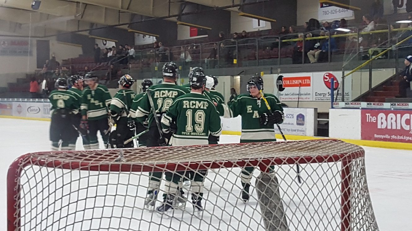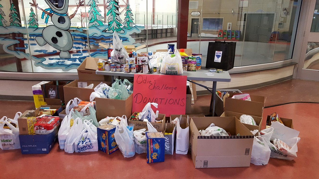 Odie’s Challenge Hockey Game was BIG success!  Cst. GUILBEAULT and the Bonnyville RCMP Detachment would like to give a BIG thank you to the community for their support! A large number of food donations came in for the Bonnyville Food Bank with more still coming in from the high schools. Bonnyville Victim Services received an amazing amount of cash donations totaling over $1,100.00.  The RCMP Members truly enjoyed playing in this event and we were happy to see all the students in the stands! Odie had a great time dropping the puck and greeting smiling faces.