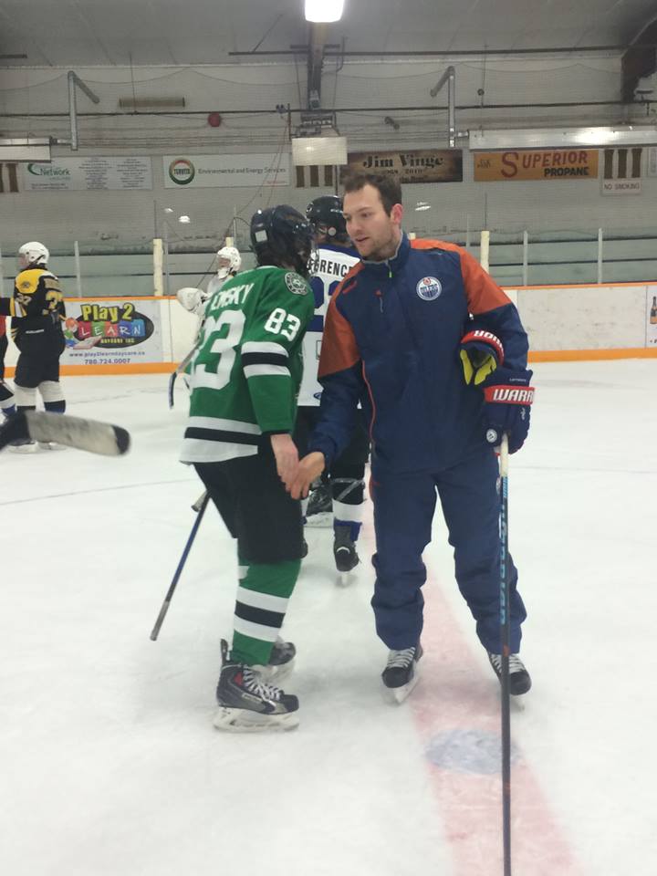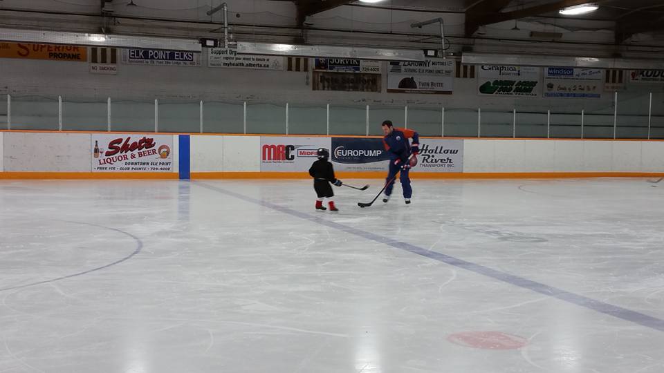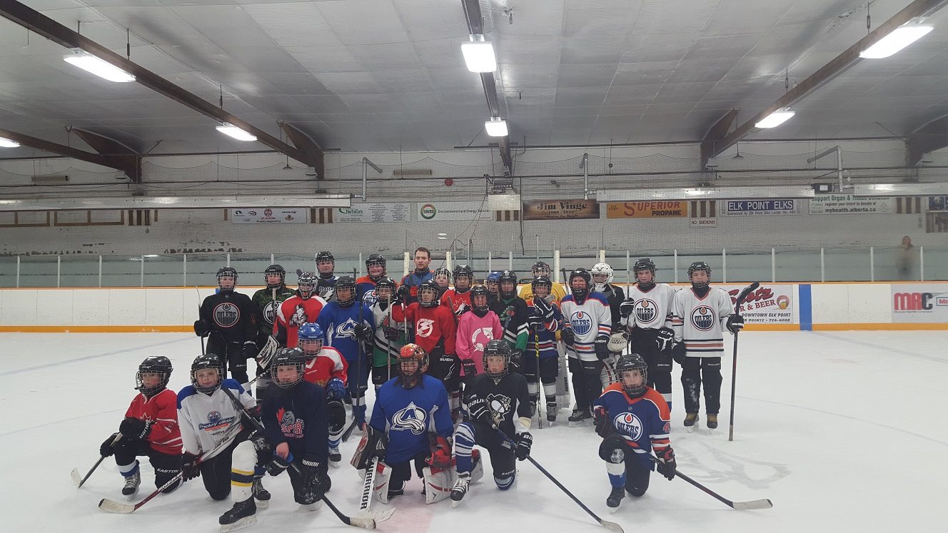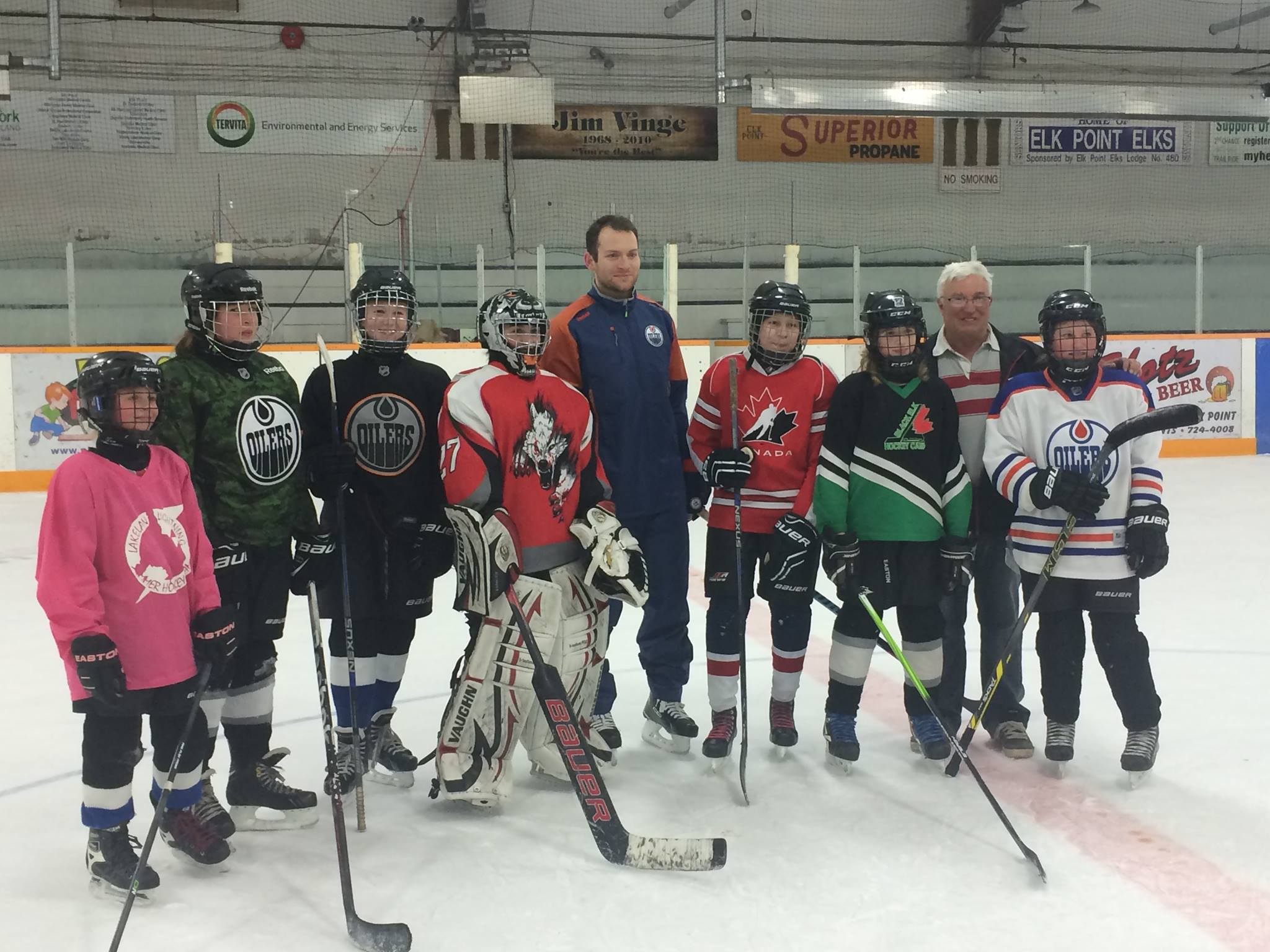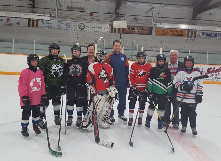 The Minor Hockey kids in Elk Point were soaring as high as the spring sun, shining in the sky, as they had an opportunity of a lifetime to skate with hometown hero and NHL star, Mark Letestu. Letestu showed the community his true character by taking time out of his busy schedule as an Edmonton Oiler, to come back to the community he was raised in.
