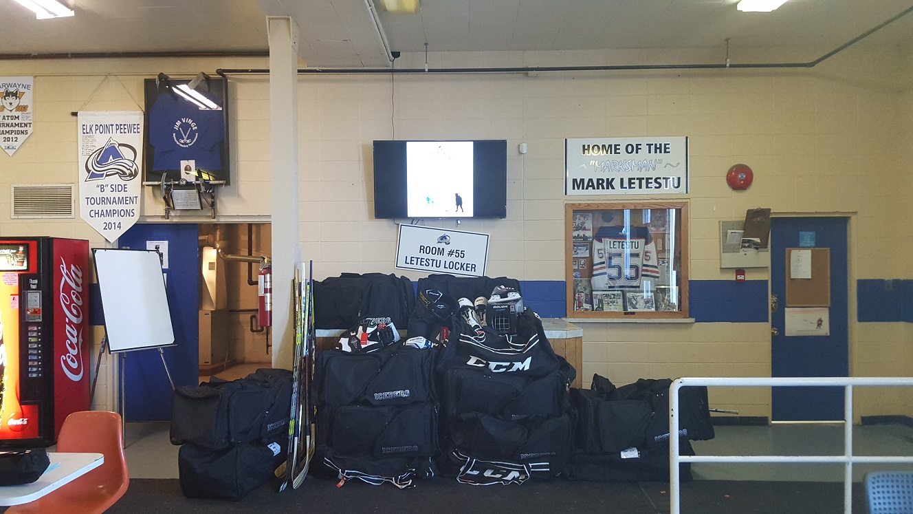 The day was to celebrate a large donation of hockey equipment from the NHL Player’s Association, Goals & Dreams Program. Minor Hockey received 14 full sets of hockey gear, sticks and skates included. The gear will be used to help players, who may not otherwise be able to, play the game. The program is called Letestu’s Locker, after the star; because, Letestu made sure Elk Point Minor hockey knew of the program and is suspected to have worked behind the scenes to ensure Elk Point benefited from the program. President Jay Pankiw says Letestu’s Locker will give so many kids a chance to experience hockey, “first and foremost we’ll use the program for people who need it. But we also want to look at doing an introduction to hockey. A six-week trial program at the beginning of the year so parents and kids can try hockey and see if it’s really for them.”