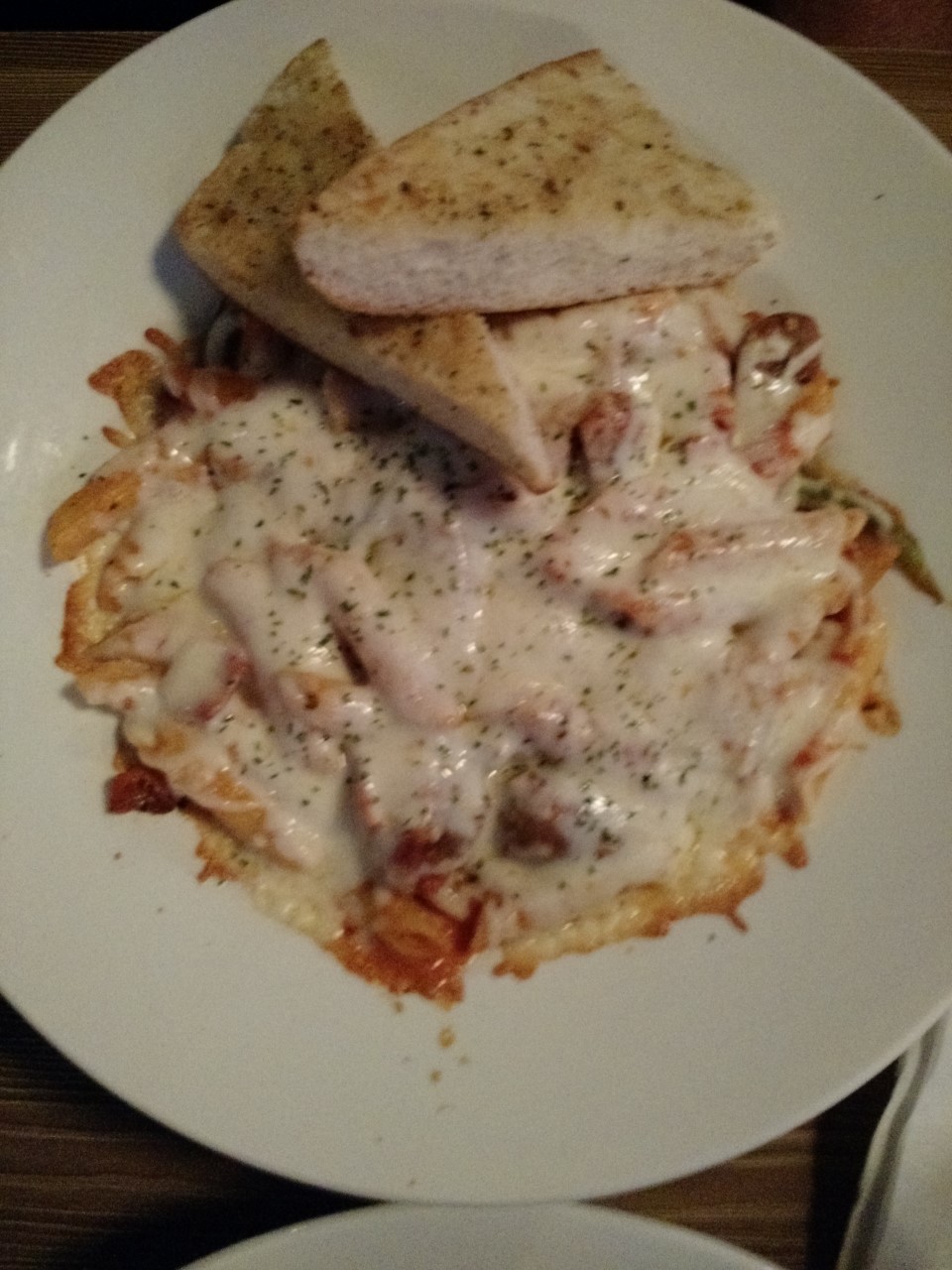 Jan ordered the Penne. It came out nicely baked, however, the Italian sausage was cut into finger-like slices and added to the dish. Jan suggested that instead, the sausage meat should be taken out of the casing and cooked with the sauce to enhance the flavor and be more pleasing to the eye.