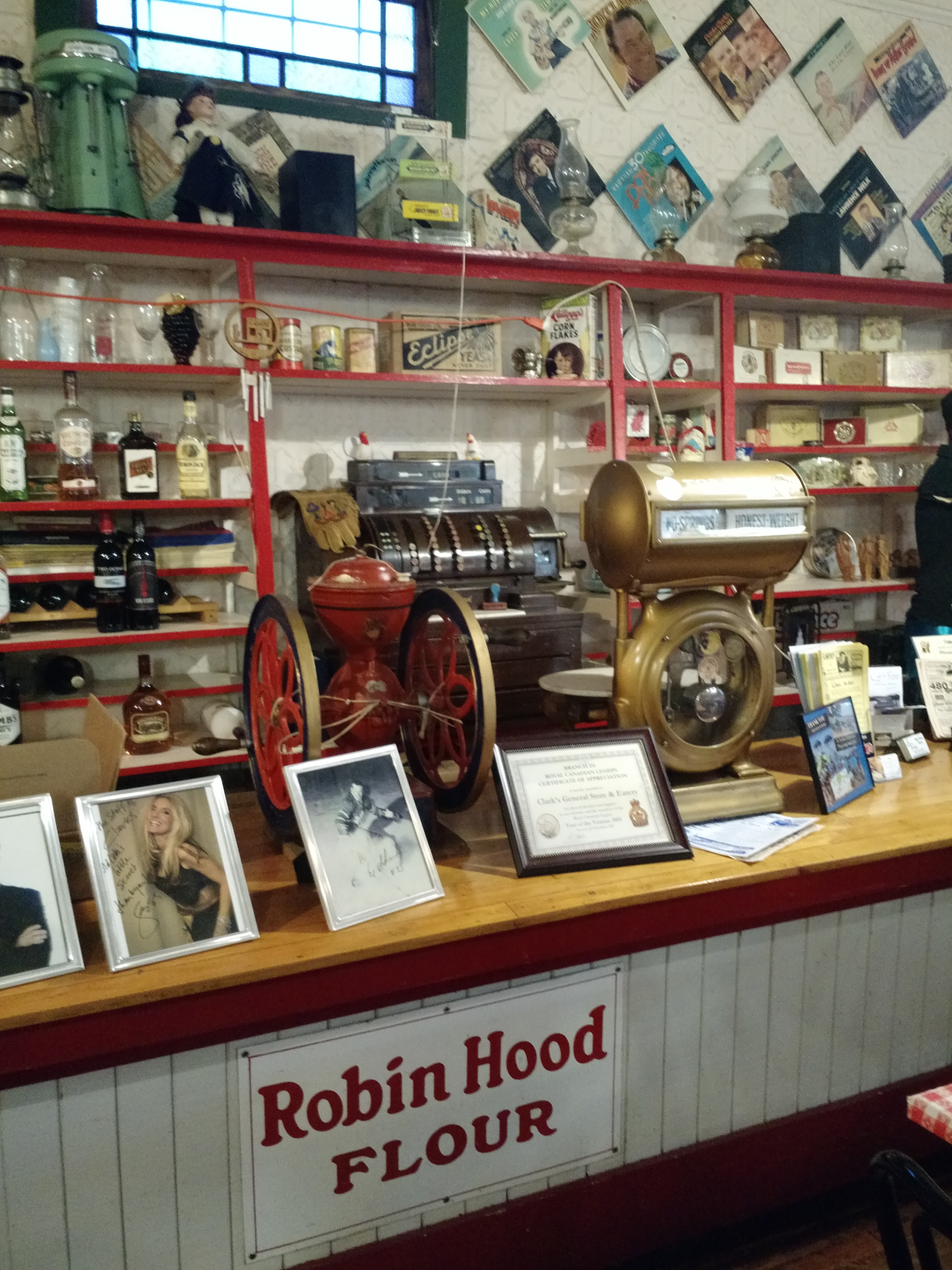 The atmosphere is incredible. This building was originally a general store. The tin ceiling and walls have been lovingly restored. Many of the furnishings are original and I love checking out the shelves full of old items.
