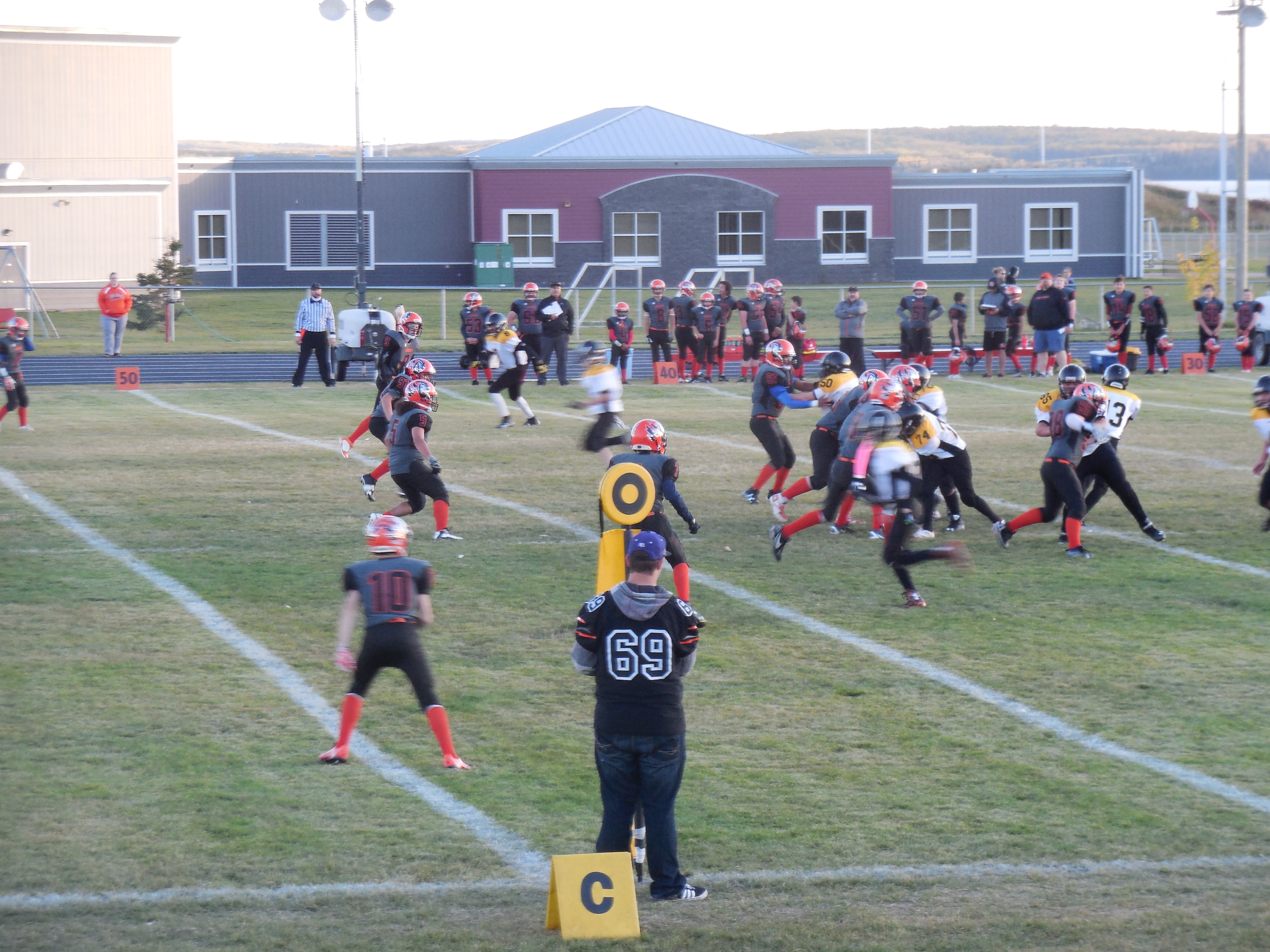 Talk about steam rolling over players, Elk Point Odin ‘The Wall’ Smith one of the biggest players in this whole junior division was not only named a team captain for this game, but the coaching staff also gave him a chance to play on the offense rushing the ball as a fullback. Too bad for the opposition who had to try to pull down this monster. It was like a mosquito hitting a truck windshield. Not much of a chance. Receiver ‘Hank the Tank’ Rogal had a great game too, making some outstanding catches with his Velcro sticky hands gaining a number of yards moving the chains downfield and then receiving two touchdown passes. Another Elk Point player, huge lineman ‘ Danny Boy’ Cardinal with a number of tackles. ‘Danny Boy’ teaming up with one of his Elk Point buddies, defensive end ‘Silent Sam’ Henderson created a fumble on one of their tackles and recovered the ball. The Bengals have one more league game this coming weekend down in Wainwright, then take a weekend off to rest and fill up the gas tank with some turkey before the league finals.