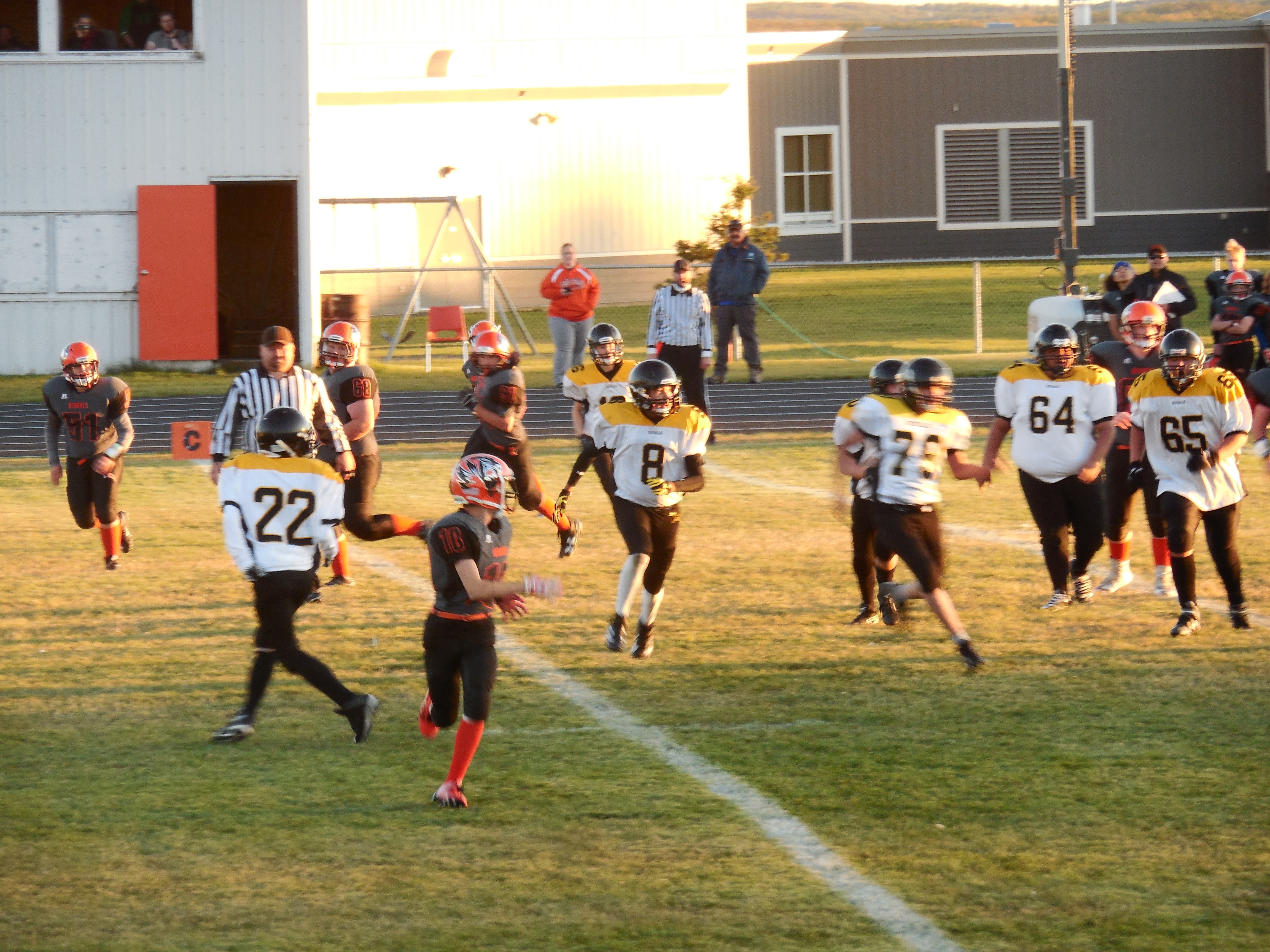 Talk about steam rolling over players, Elk Point Odin ‘The Wall’ Smith one of the biggest players in this whole junior division was not only named a team captain for this game, but the coaching staff also gave him a chance to play on the offense rushing the ball as a fullback. Too bad for the opposition who had to try to pull down this monster. It was like a mosquito hitting a truck windshield. Not much of a chance. Receiver ‘Hank the Tank’ Rogal had a great game too, making some outstanding catches with his Velcro sticky hands gaining a number of yards moving the chains downfield and then receiving two touchdown passes. Another Elk Point player, huge lineman ‘ Danny Boy’ Cardinal with a number of tackles. ‘Danny Boy’ teaming up with one of his Elk Point buddies, defensive end ‘Silent Sam’ Henderson created a fumble on one of their tackles and recovered the ball. The Bengals have one more league game this coming weekend down in Wainwright, then take a weekend off to rest and fill up the gas tank with some turkey before the league finals.