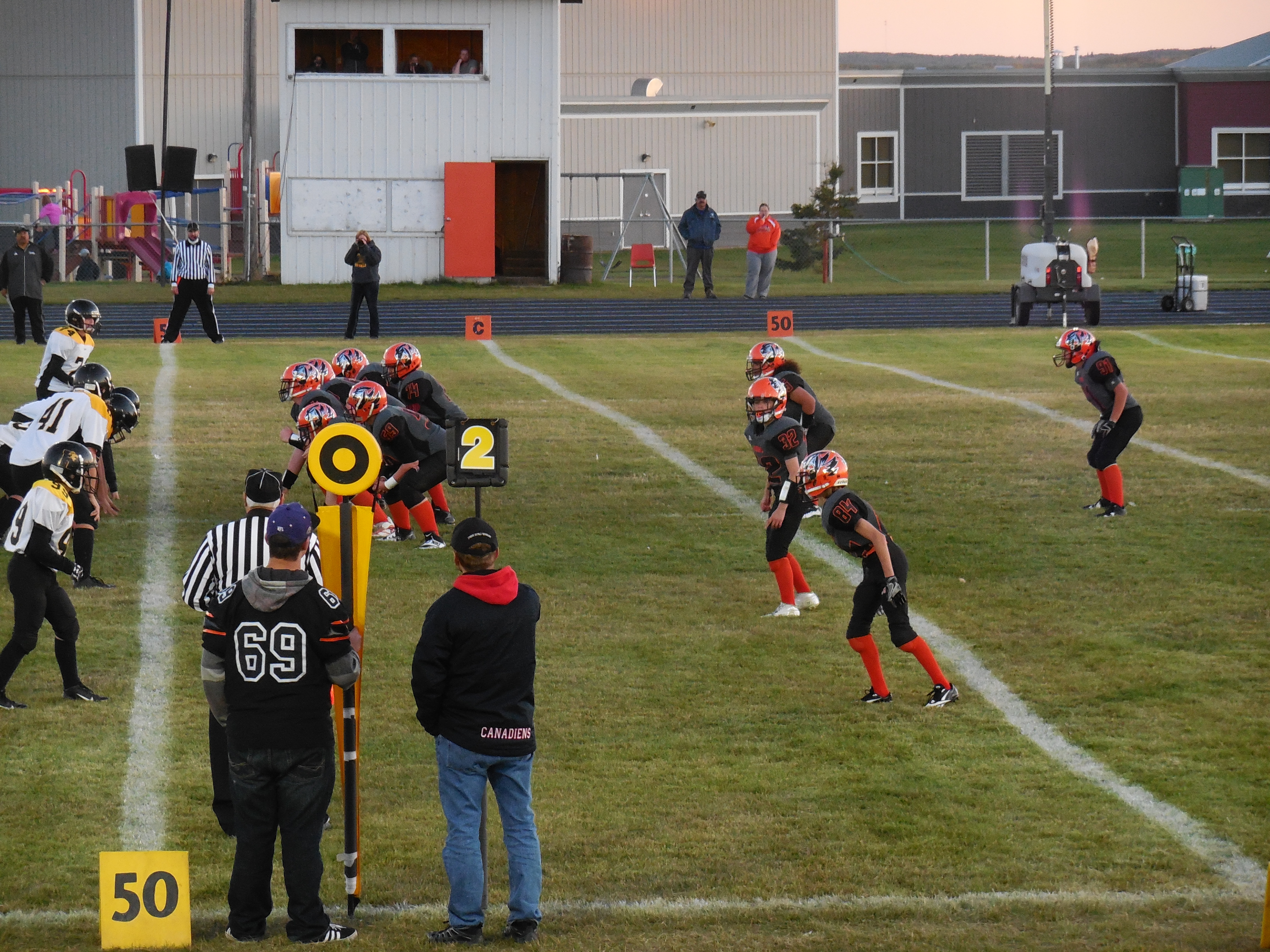Everyone want to be in the spot light sometime in their life. The St. Paul Bengals got their chance this past Saturday night under the lights at home and they sure knew how to perform when their turn came. The hype had been building up all week for the big night, plus the fact they had been defeated last week by Lloydminster, so, that didn’t hurt either, the boys knew the task at hand was extremely important and practised hard all week. But when the big day came they had absolutely no problem rolling over Cold Lake winning 69 to 14.