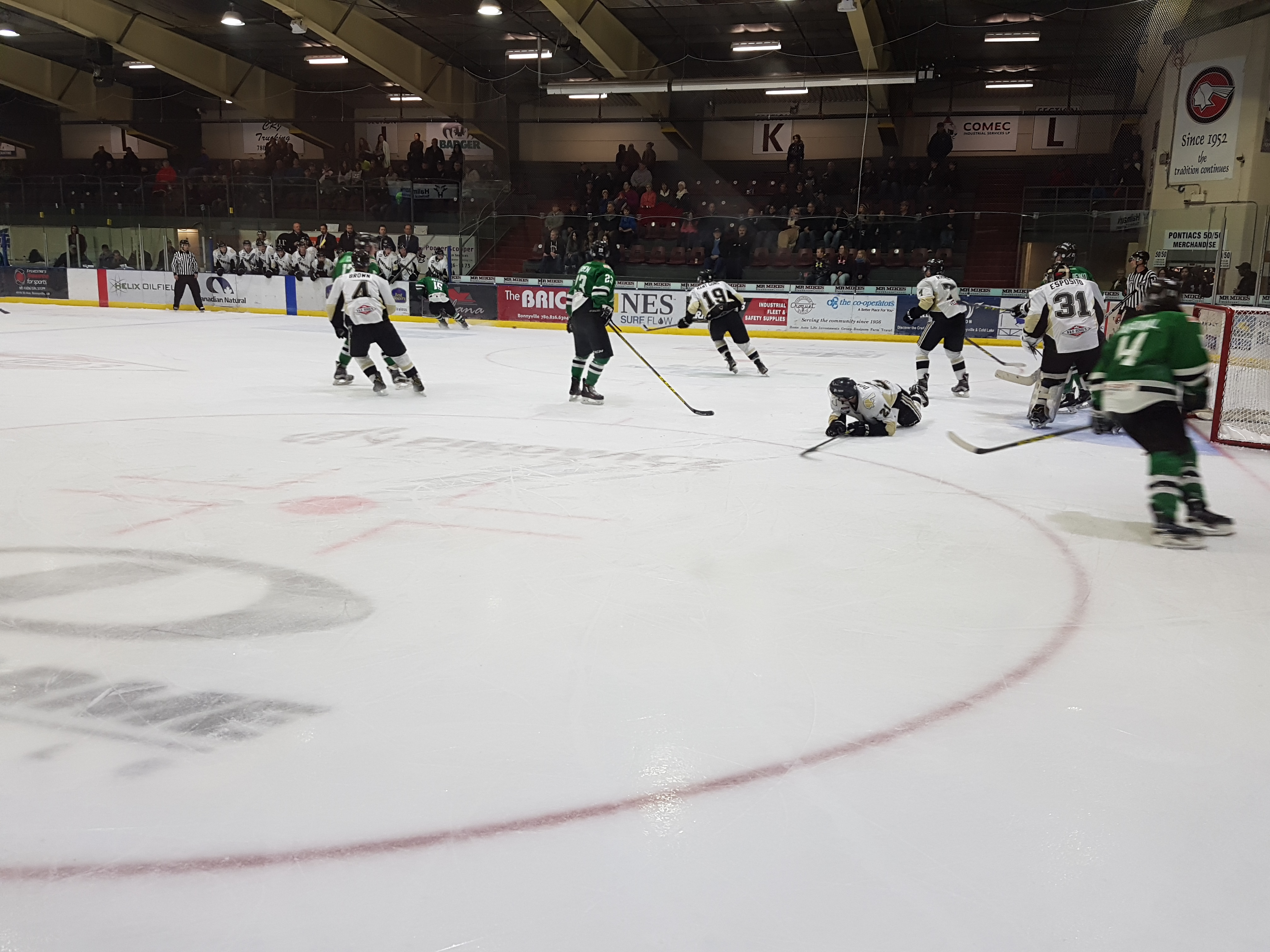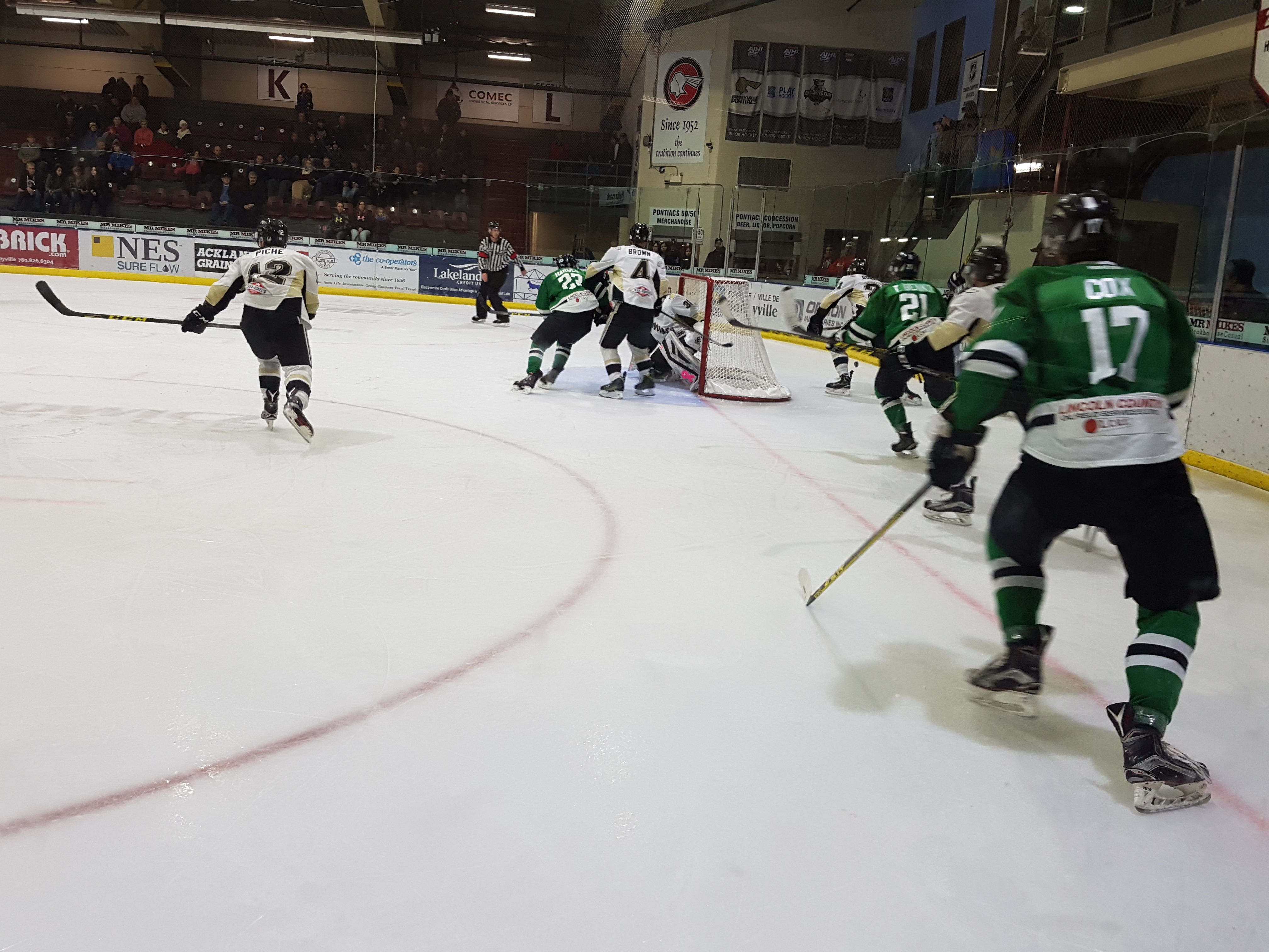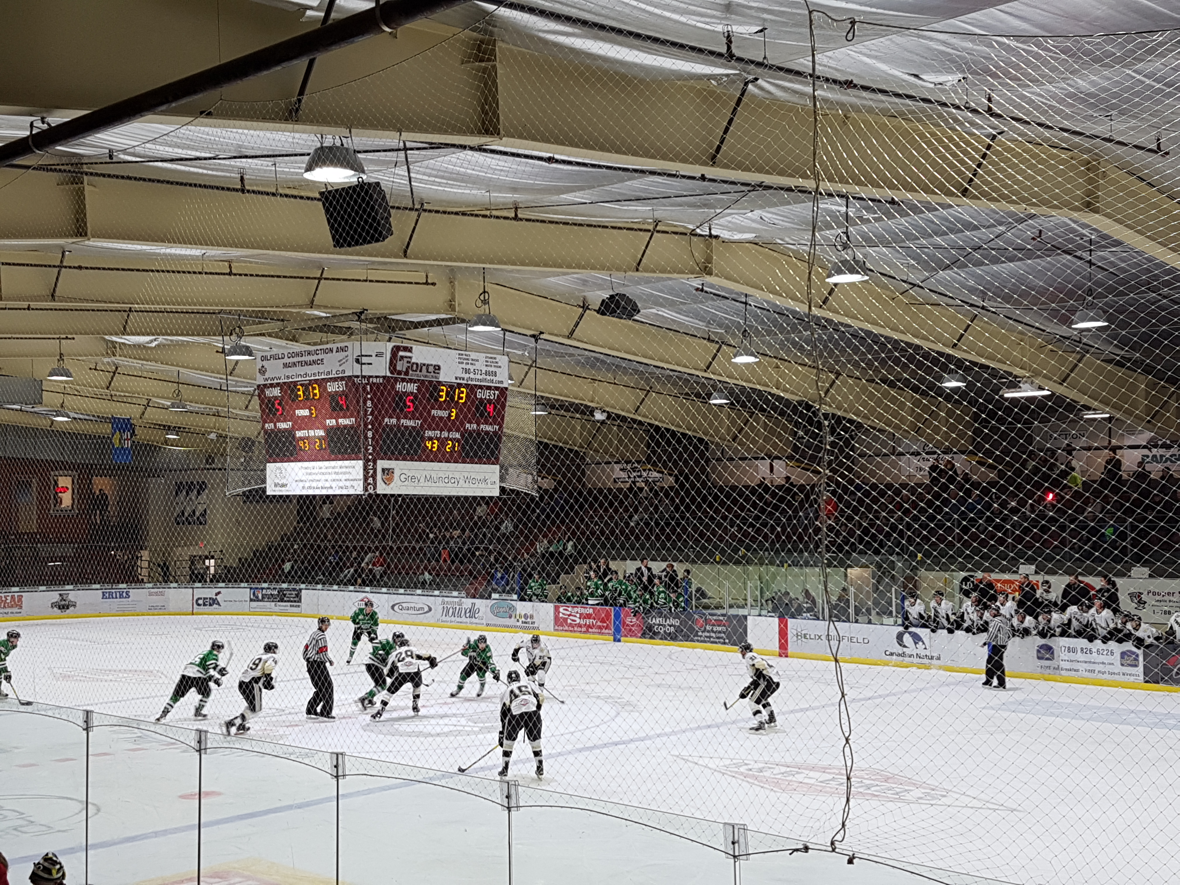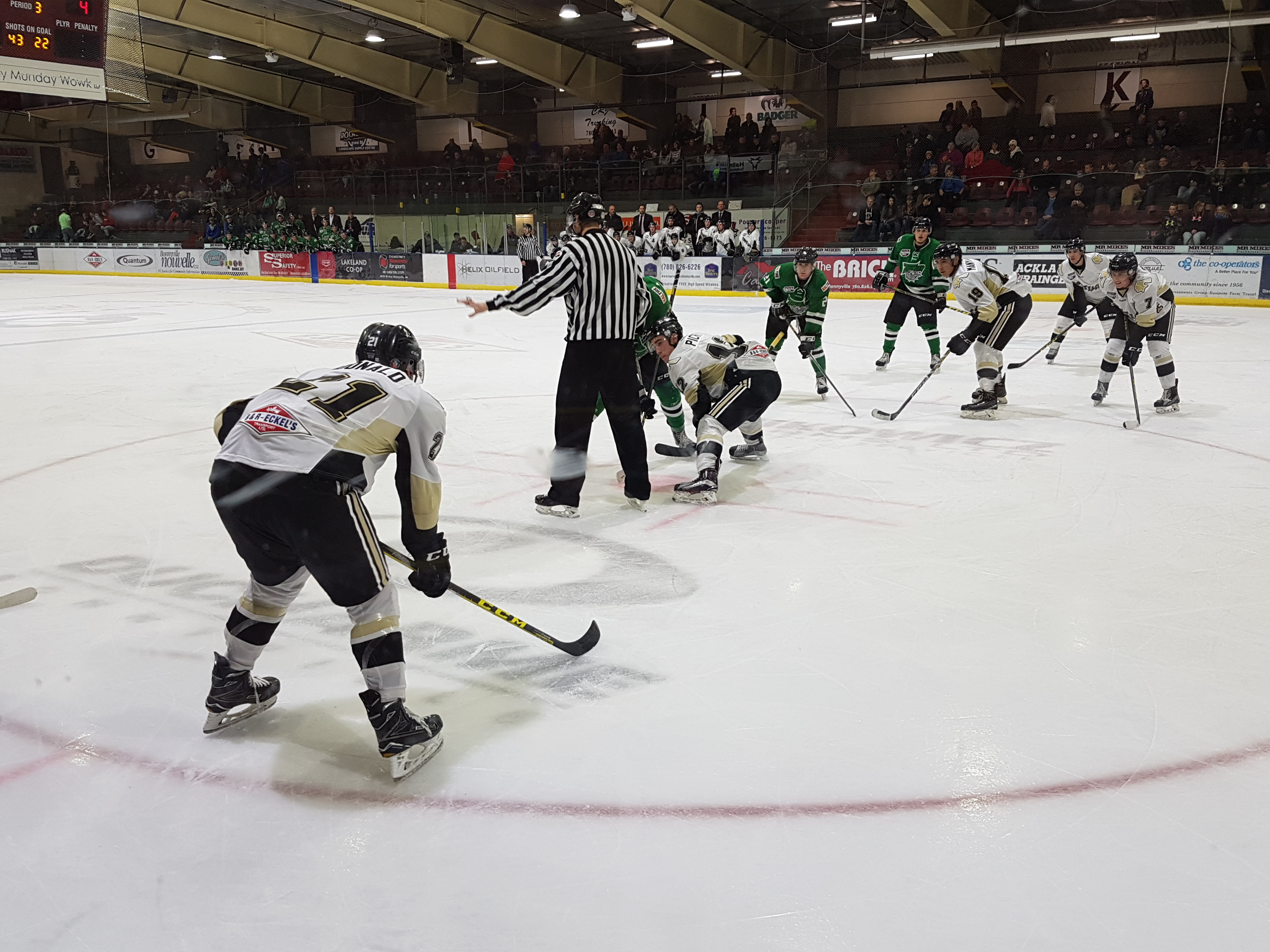 Intensity rose in third with captain of the Pontiacs’ Ryan Symington dropping mitts with Connor Mowatt. Both players would get ejected from the game with 10 minutes for game misconduct and 5 for fighting. Drayton Valley’s Mackenzie Mindus would take some time to reflect only four seconds later for holding; while the scoreboard would hold tight as well.