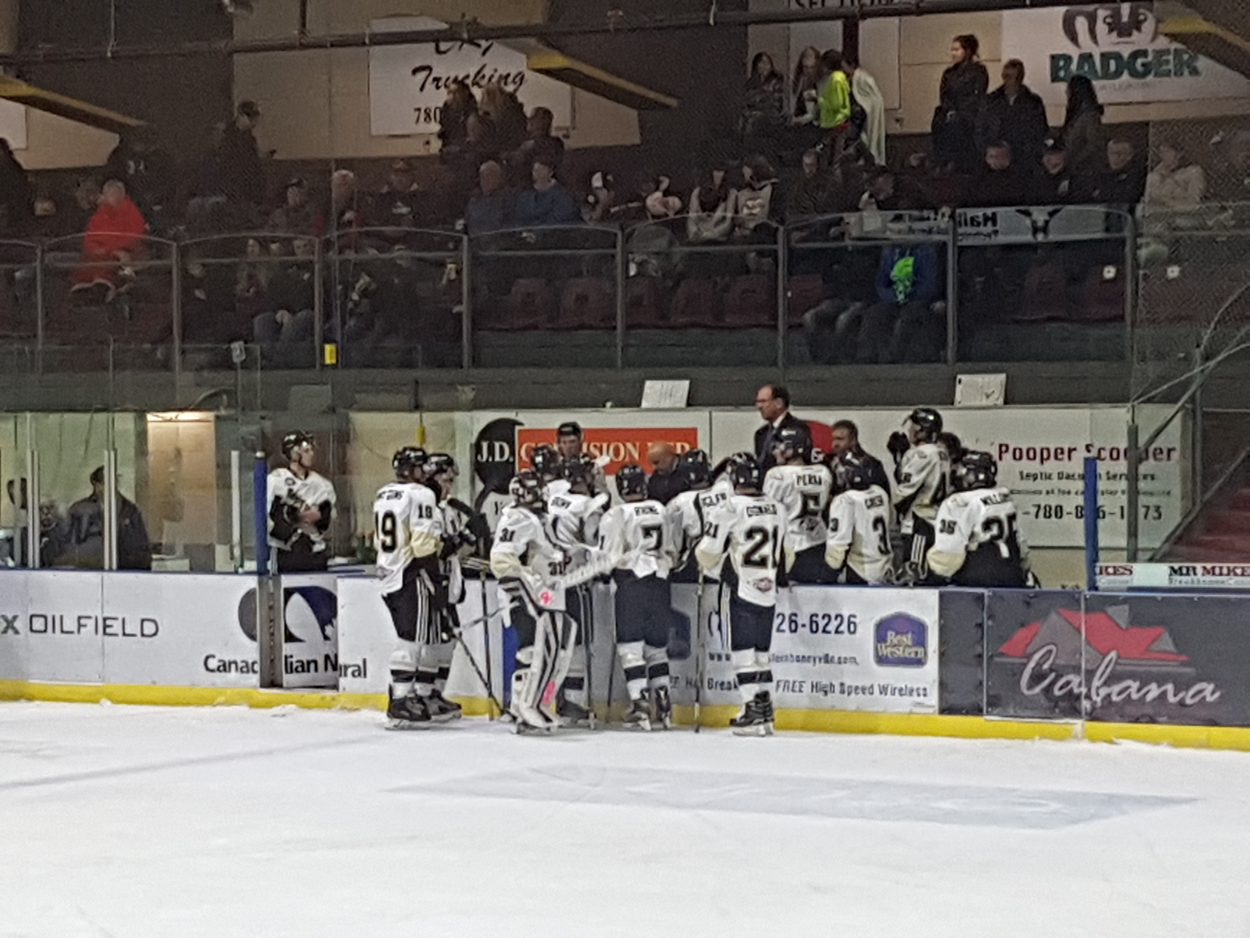Intensity rose in third with captain of the Pontiacs’ Ryan Symington dropping mitts with Connor Mowatt. Both players would get ejected from the game with 10 minutes for game misconduct and 5 for fighting. Drayton Valley’s Mackenzie Mindus would take some time to reflect only four seconds later for holding; while the scoreboard would hold tight as well.