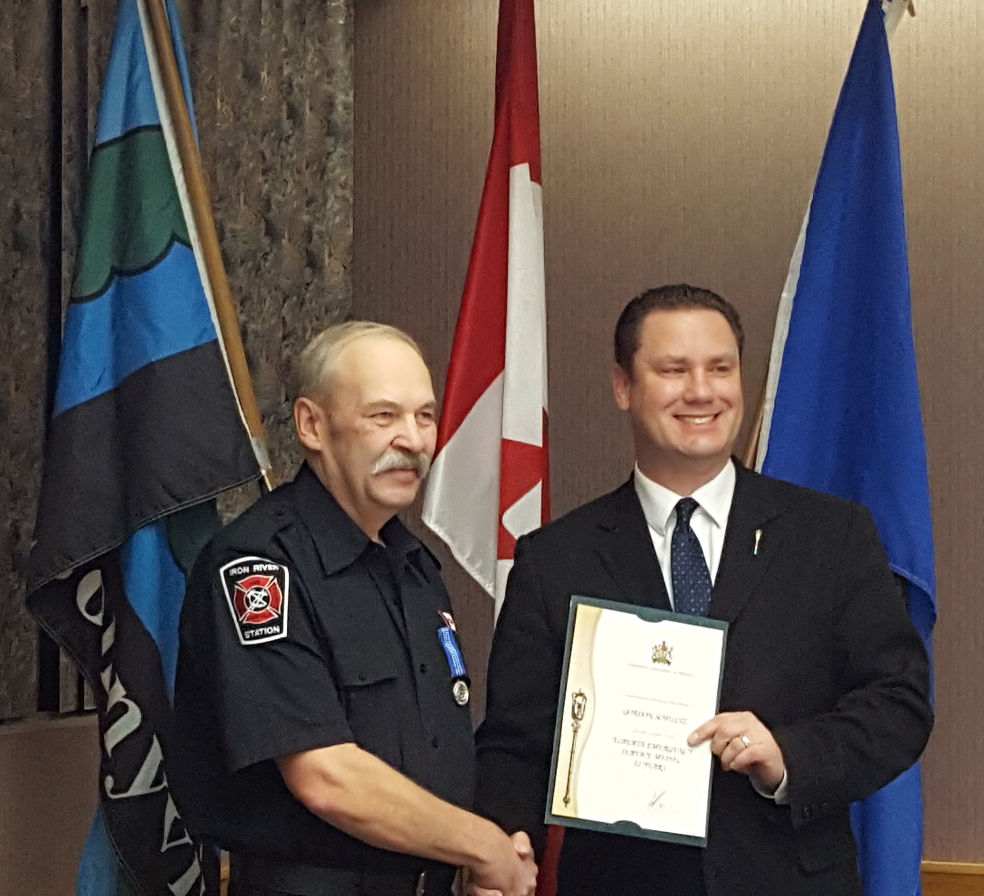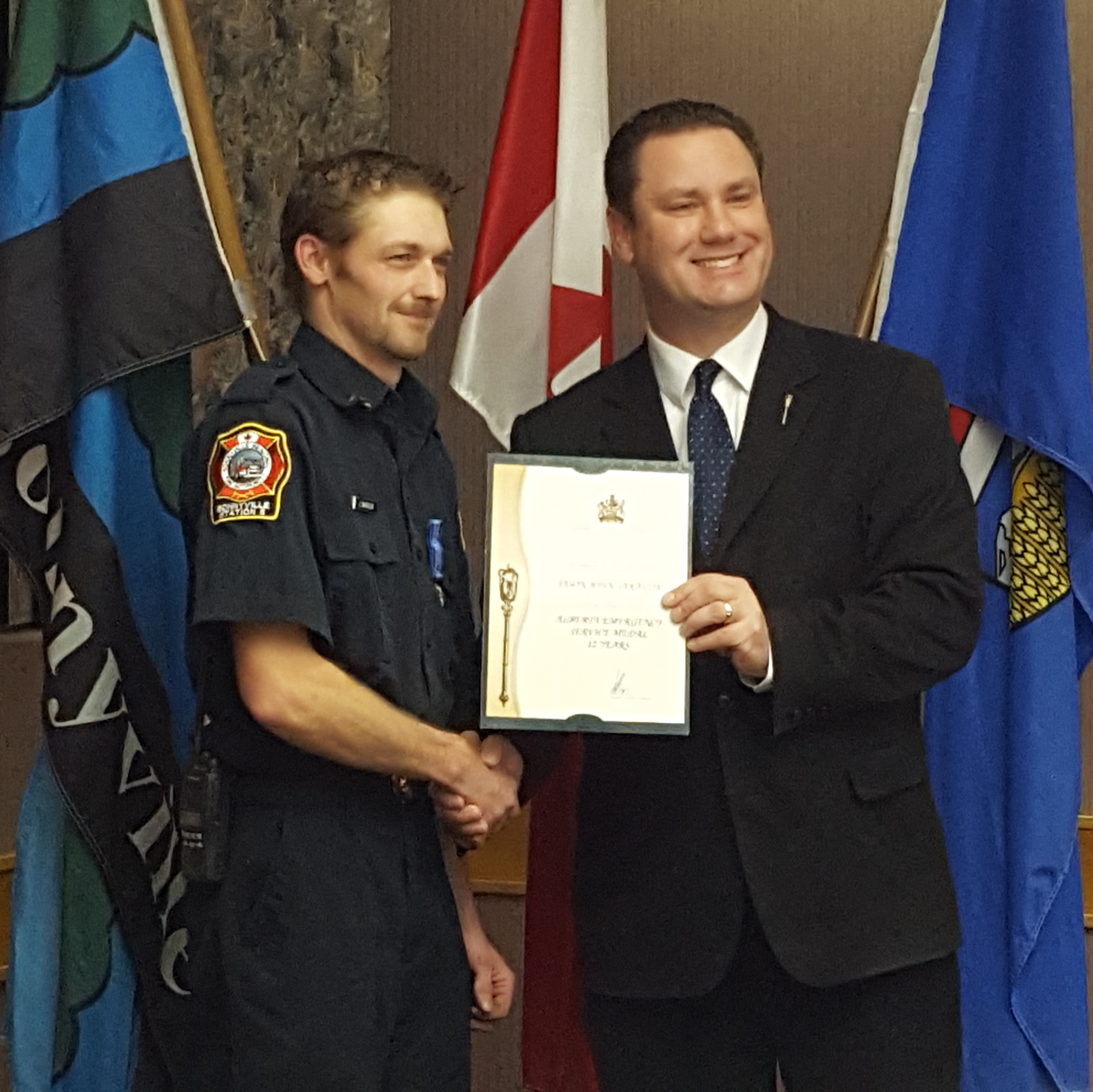 On Tuesday evening, Regional Deputy Chief of the Bonnyville Fire Authority, Jay Melville, hosted an awards ceremony prior to the Town of Bonnyville’s regular Council Meeting, in Council Chambers. The medal celebrates and honours local volunteers and emergency services employees. The MLA for Bonnyville-Cold Lake, Scott Cyr, honoured the recipients with the Emergency Services Medal, thanking each for their years of service to the community.