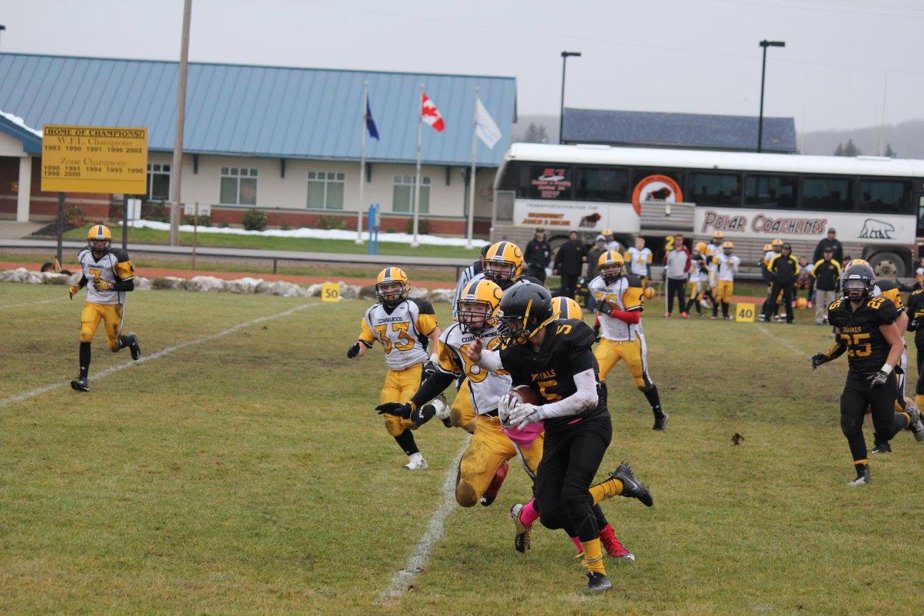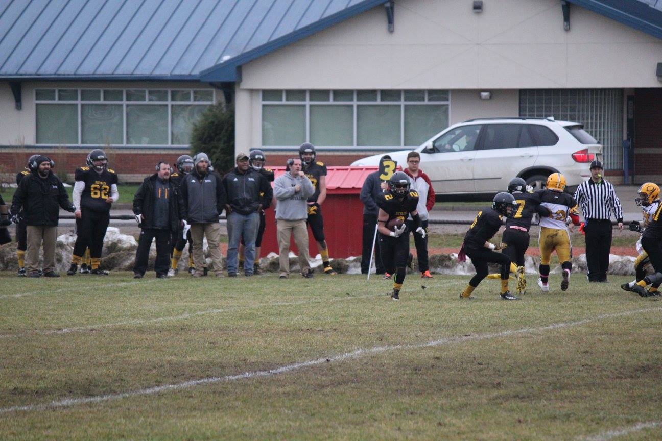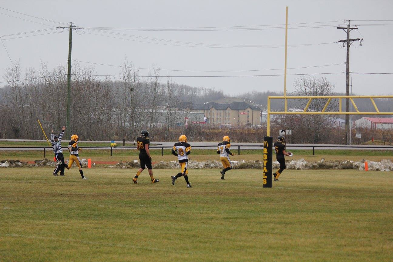 The coach said the whole team really came together on Saturday, with a few standouts, “Aiden Harrison at fullback had another solid game for us carrying the ball. Some of that credit will go to the Offensive line also – Keith Swan, Nathan Williston, Bryton Bouvier, Chad Nolan, Alex Dombinski and Hunter Nicholson.”
