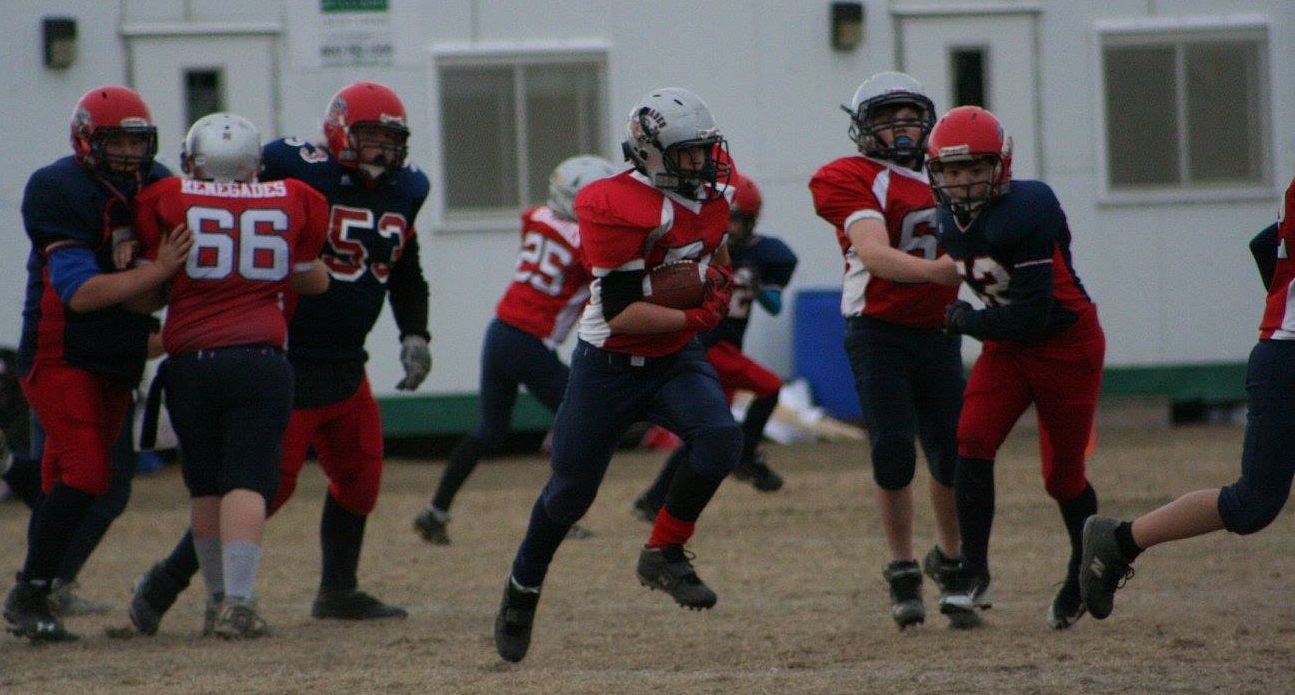At halftime the Renegades were up 60-0 on Strathmore. “No Peewee team has done what we have, in any tier. We threw for over 2000 yards (for the season). We have 24 passing touchdowns; nobody’s done that. With 3500 yards rushing.” Sartain says the success in the season carried into the post-season because the club is balanced, “we pass, we run, we do trick plays. We look like the New English Patriots out there,” laughs the coach.