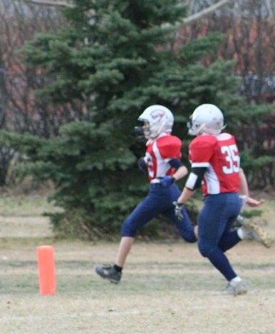 At halftime the Renegades were up 60-0 on Strathmore. “No Peewee team has done what we have, in any tier. We threw for over 2000 yards (for the season). We have 24 passing touchdowns; nobody’s done that. With 3500 yards rushing.” Sartain says the success in the season carried into the post-season because the club is balanced, “we pass, we run, we do trick plays. We look like the New English Patriots out there,” laughs the coach.