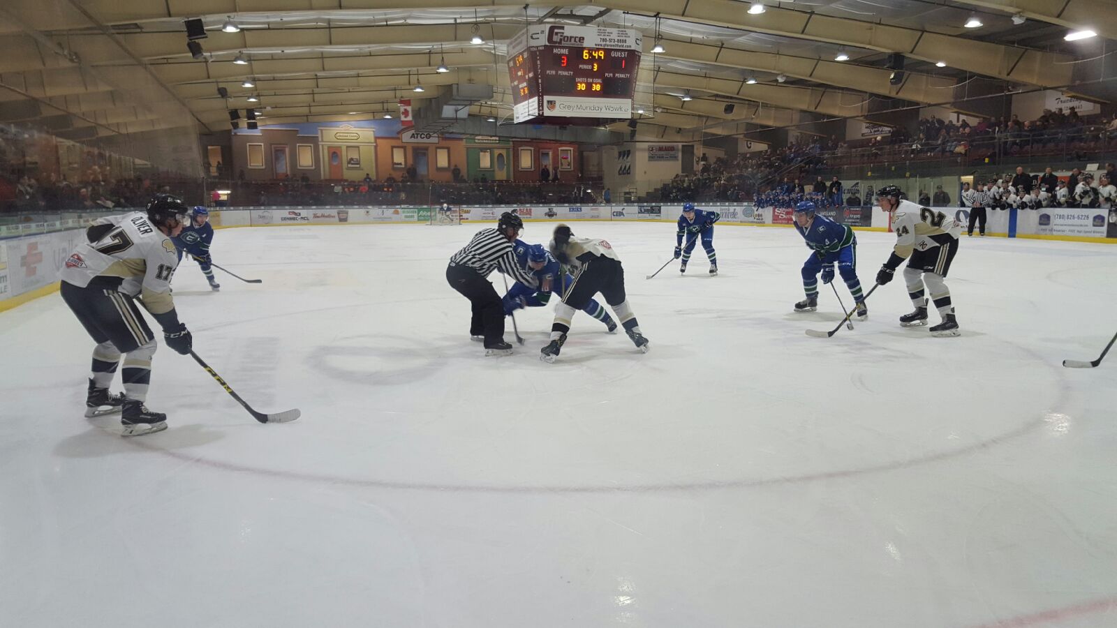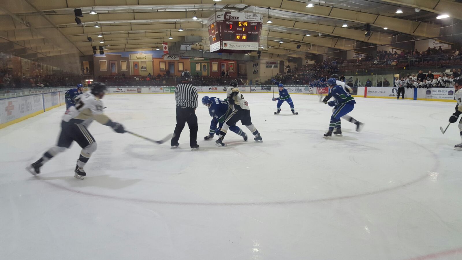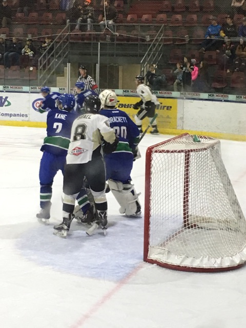 “The reason teams are successful is because they play to a certain standard.” Coach Swan says the second period the Pontiacs began to digress their game, “we played below our standard and allowed a pretty good hockey team to give it to us for 40 minutes.” With no scoring in the second the teams kept the crowd entertained with hard-hitting hockey action. Mark Drohan of the Canucks and Trygve Many Guns got into a scuffle at 7:21 in the period following a check from behind by Drohan. Frohan receiving a game misconduct following the fight and Many Guns with unsportsmanlike behaviour.
