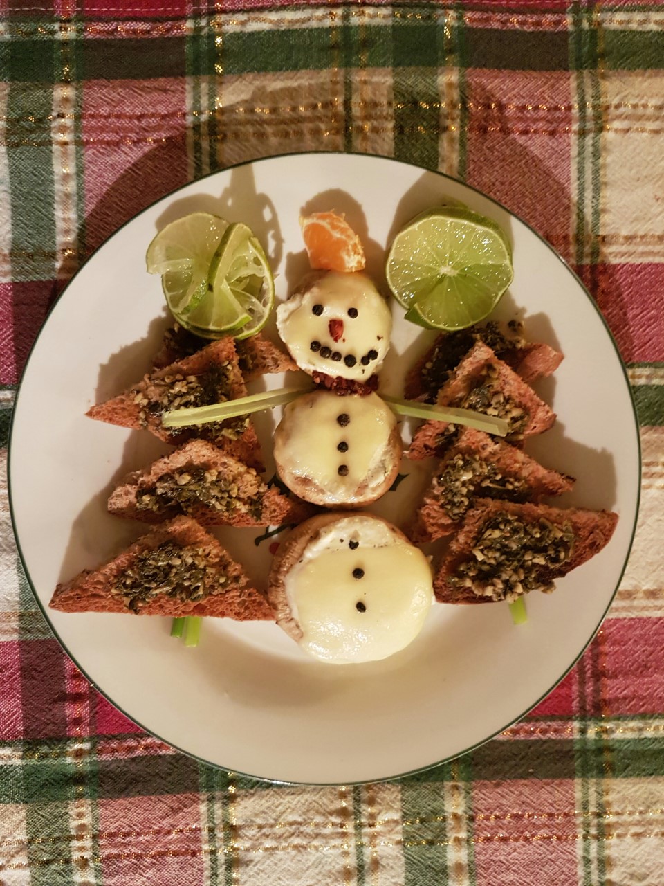 Christmas Appetizer: Stuffed Mushrooms and Toasted Pesto Points