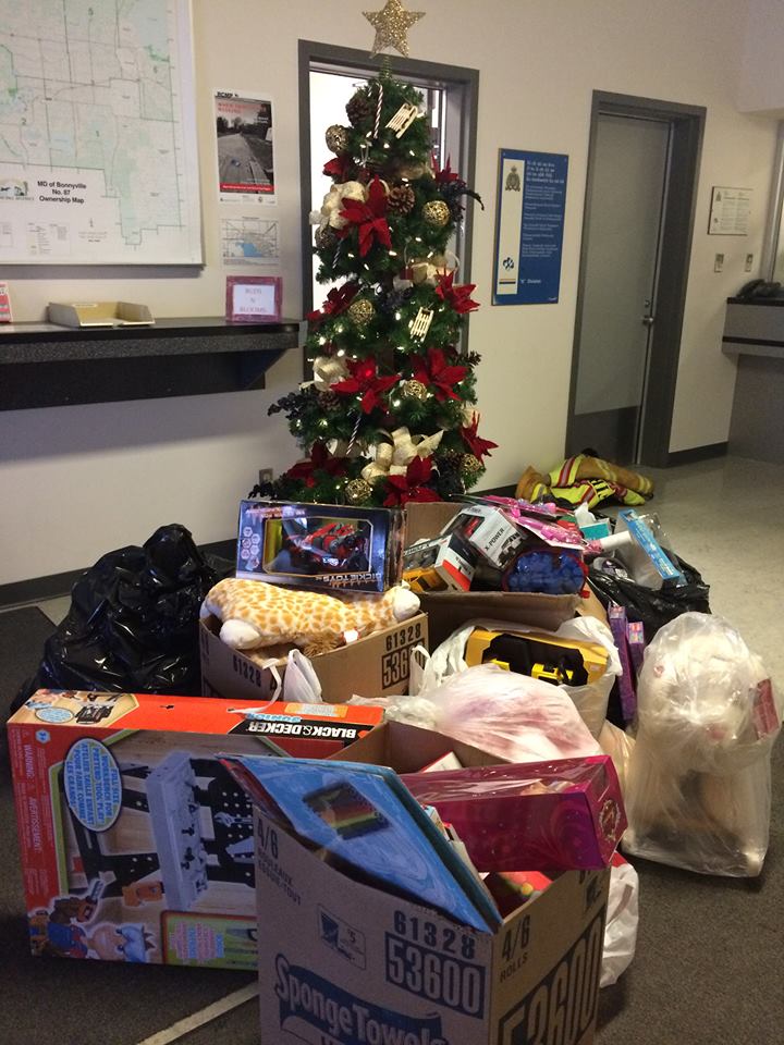 “Once again, the community made it a success,” Winestone says from 12:00 – 2:00 pm on Saturday volunteers braved the deep cold weather to collect donations. Toys for Santa’s Elves, Food for the Bonnyville Food Bank and money that will go to help Victim Services continue to provide important programming.