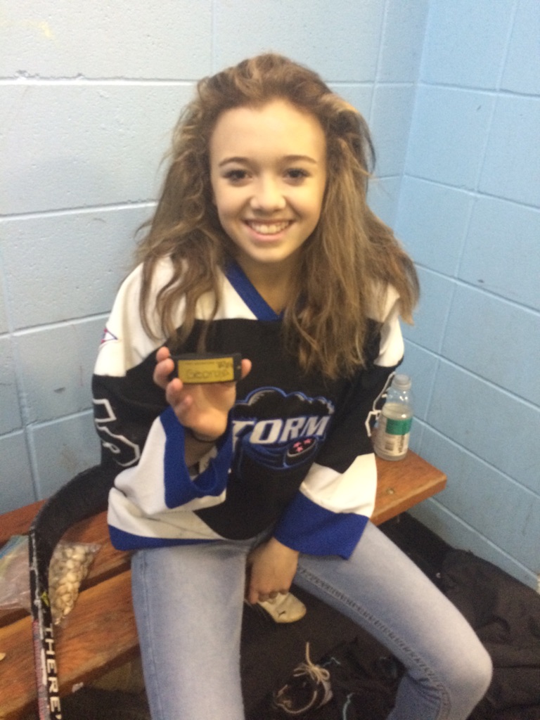 ‘ Louis ‘ was one of the Storm Trooper of the game on Sunday. She’s not very big but plays an intense game for-checking and back checking.
