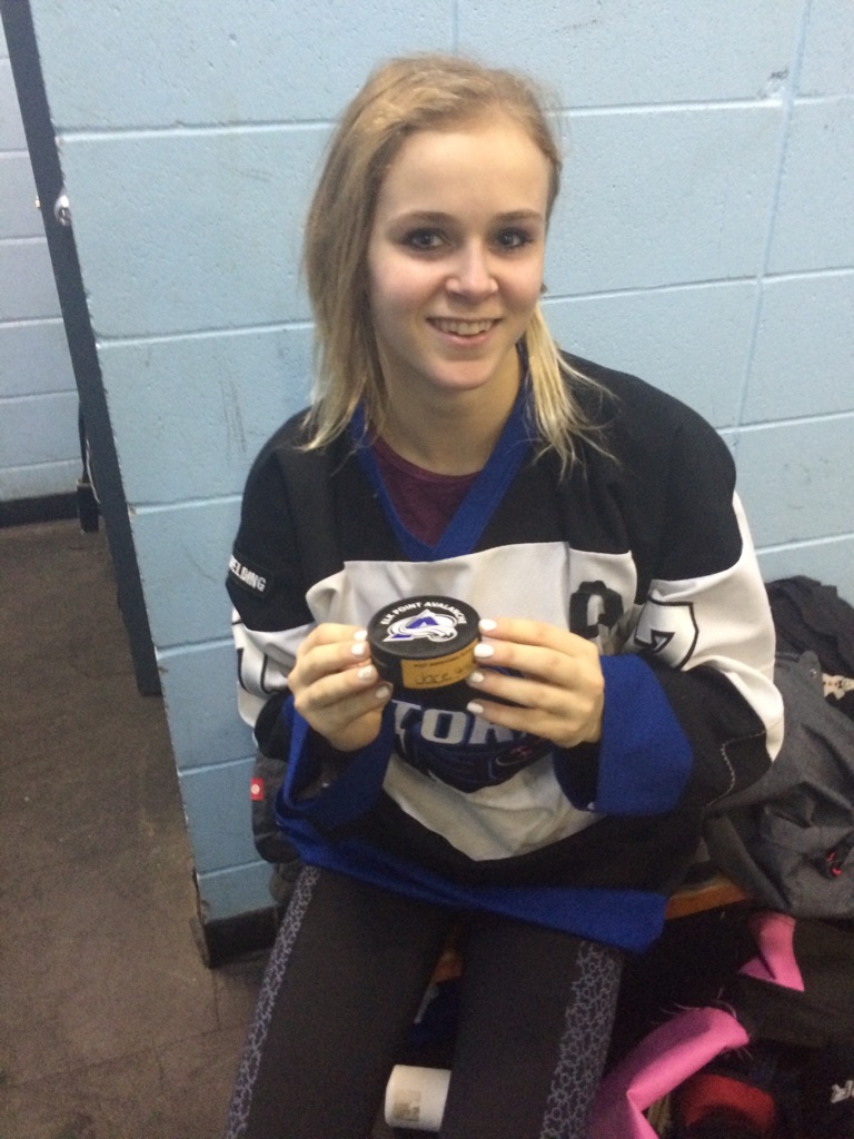 Tandem defense partners ‘ Gorgeous Georgia ‘Bendixen and Jace’ jack Hammer’ Weidmark , also named as Storm troopers for their solid work moving the puck out of our end, the coaching staff having a tough time picking out just one player, in fact the whole team could have be named. The girls will now have a well deserved rest until the new year.