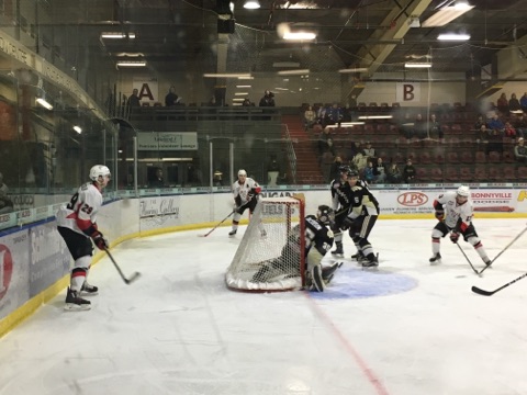 The first period got underway until 16:25, when the Kodiaks’ Eddie May put in a goal. The Pontiacs skated off the ice at the buzzer with 10 shots on net, against Camrose’s Patrick Gora. As for the Pontiacs’ netminder, Robert Jacobson… he took on 12 shots on net, letting on one goal to close the period 1-0 Kodiaks.