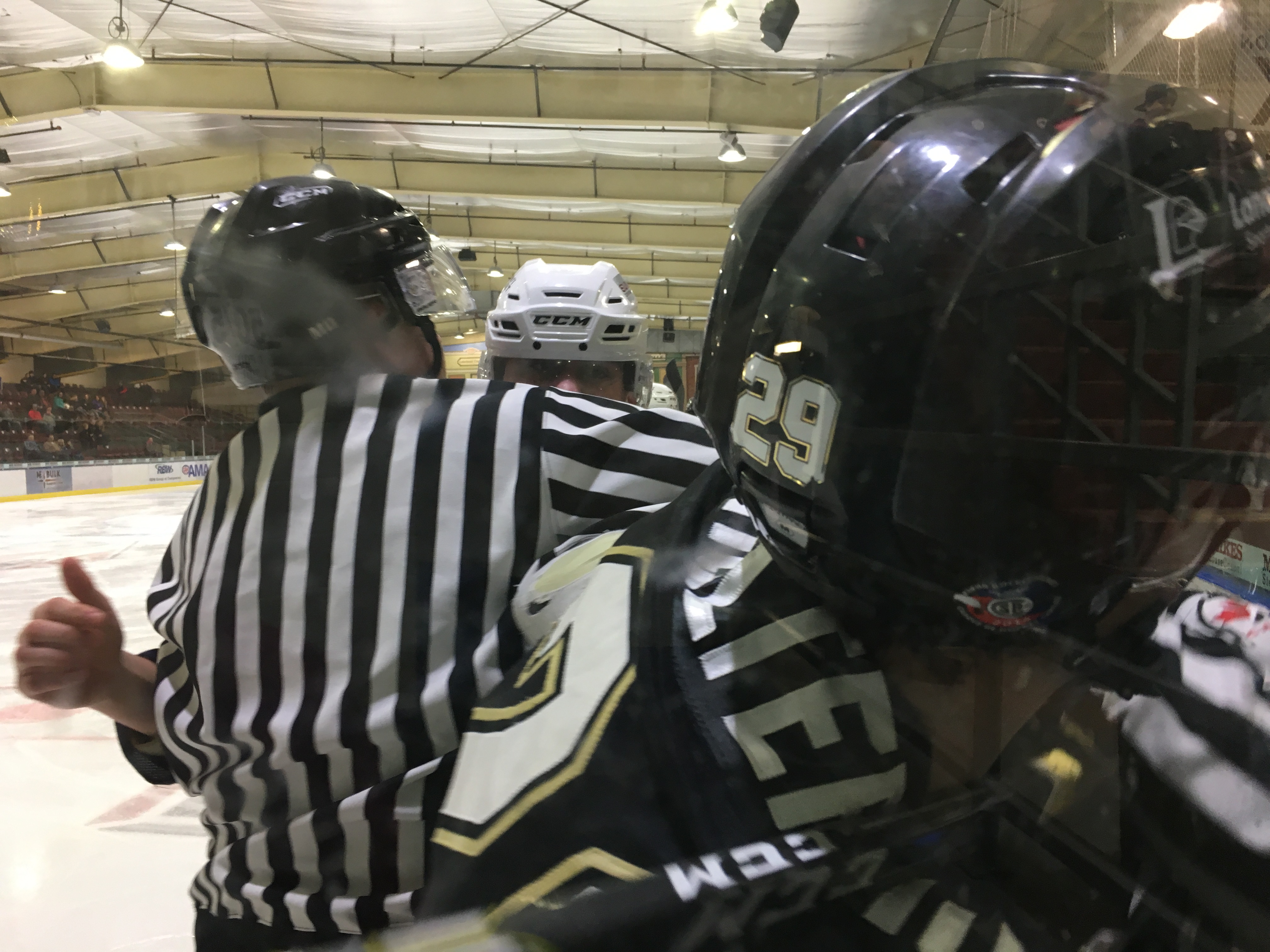 The mistakes came early in the game, says the coach, “two preventable mistakes and they capitalize.” 32 seconds into the game, Fort Macs’ Brandon Ralph put in an unassisted goal on the Pontiacs. The Oil Barons would gain a two-goal lead on the Yaks before the close of the first, with a goal from Matteo Aiello. The remainder of the game was scoreless and hard fought.