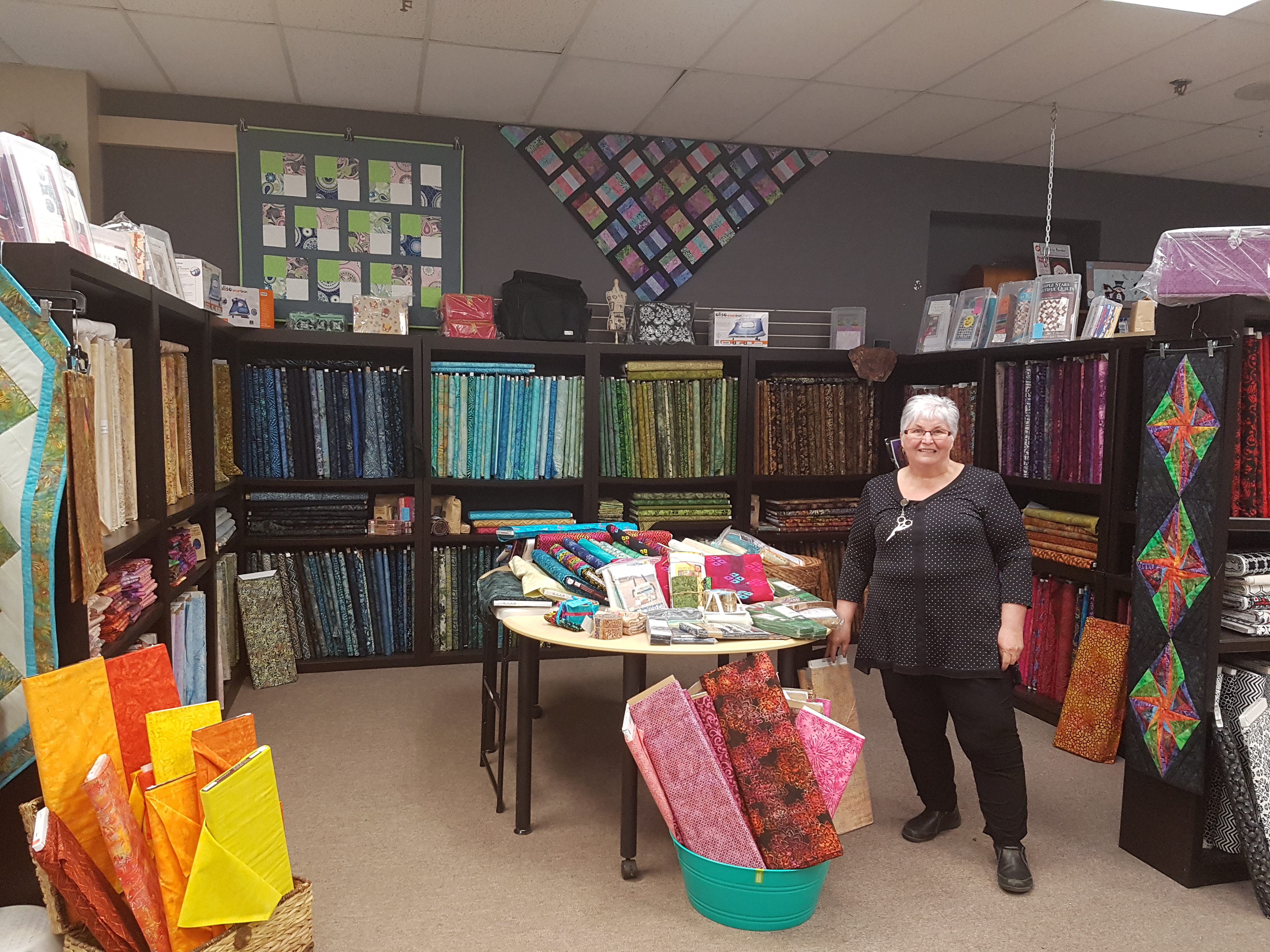 Yvonne’s has in stock the best fabric selection, including Canada 150 fabric, wilderness panels, Disney panels and coordinating 100% cotton threads. Quilting accessories, patterns, needles, mending patches, applique paper, a large selection of rulers and specialty cuts on demand. “It’s nice because we can do all the cutting for you and save you a lot of time,” Yvonne explains you can bring in any pattern and they will custom cut the fabric for that specific pattern. Other great options for fun quilts or gifts are Charm Packs and Layer Cakes. Yvonne’s Gone Quilting has the best products, ideas, and classes in the area. It’s no wonder that many people come from all over the region to shop at Yvonne’s Gone Quilting; Lac La Biche, Smokey Lake,Two Hills, Elk Point, Cold Lake, Bonnyville, and surrounding communities.