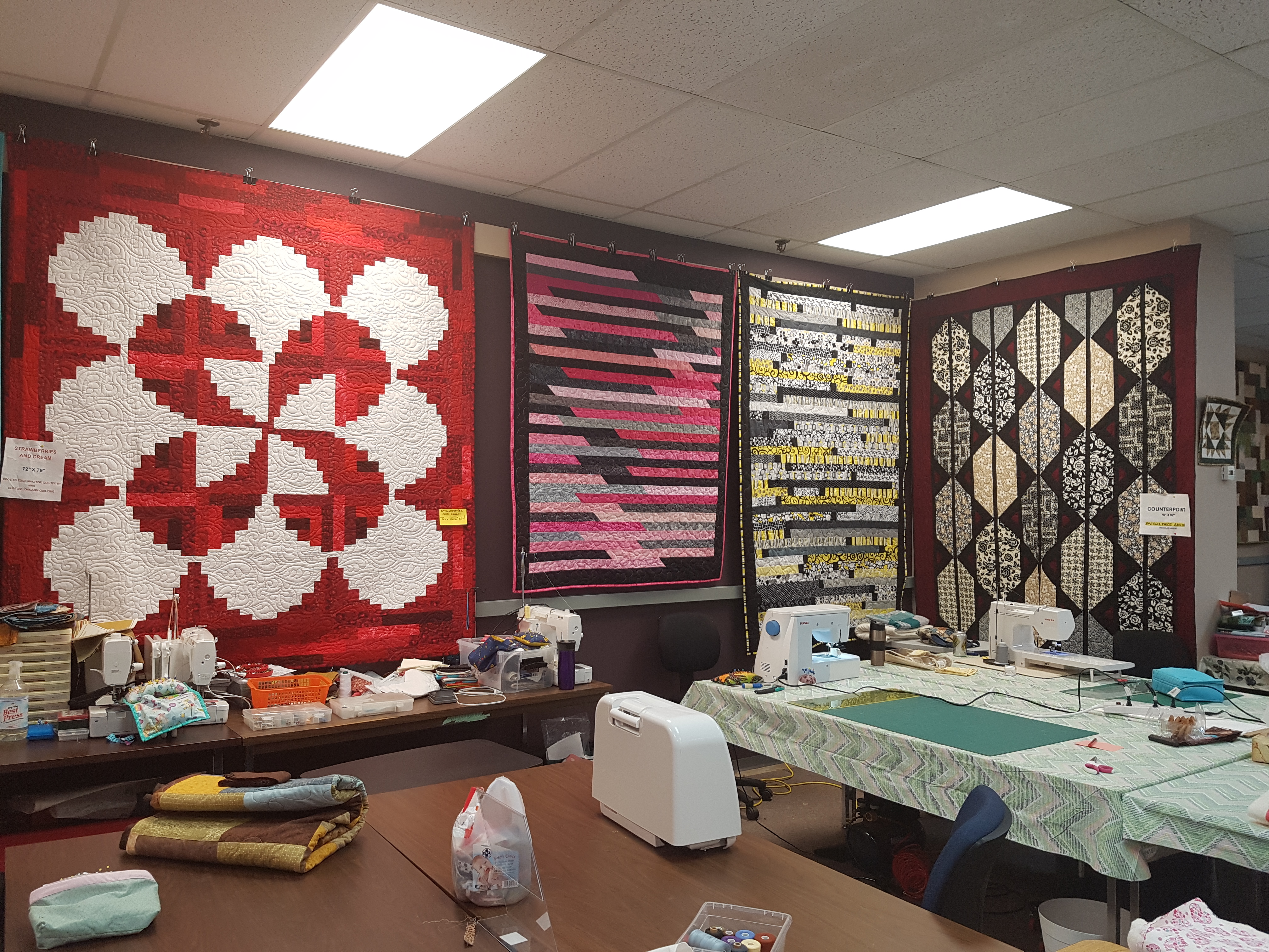 Yvonne’s has in stock the best fabric selection, including Canada 150 fabric, wilderness panels, Disney panels and coordinating 100% cotton threads. Quilting accessories, patterns, needles, mending patches, applique paper, a large selection of rulers and specialty cuts on demand. “It’s nice because we can do all the cutting for you and save you a lot of time,” Yvonne explains you can bring in any pattern and they will custom cut the fabric for that specific pattern. Other great options for fun quilts or gifts are Charm Packs and Layer Cakes. Yvonne’s Gone Quilting has the best products, ideas, and classes in the area. It’s no wonder that many people come from all over the region to shop at Yvonne’s Gone Quilting; Lac La Biche, Smokey Lake,Two Hills, Elk Point, Cold Lake, Bonnyville, and surrounding communities.