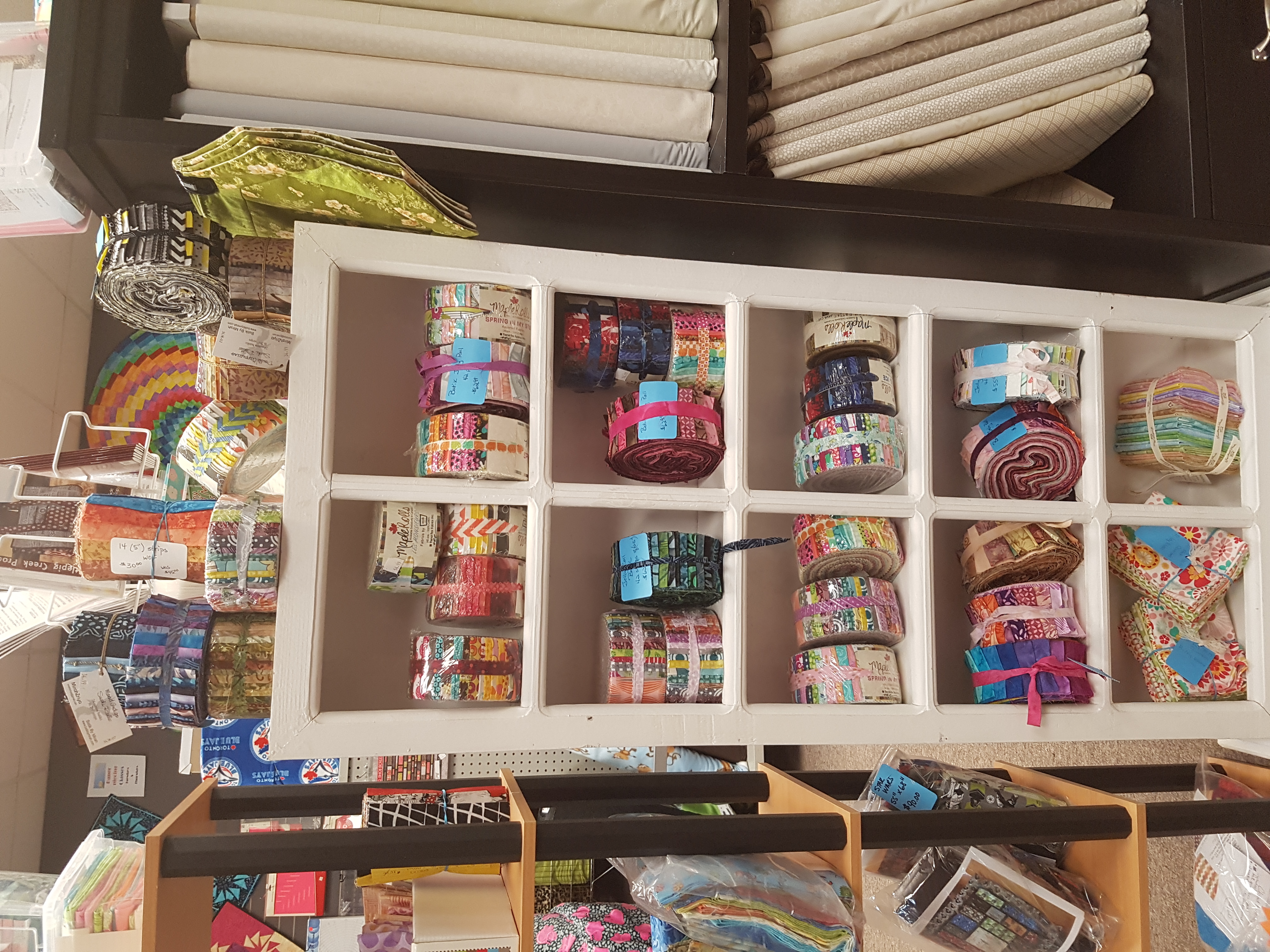 If you want to have fun with quilting, Yvonne suggests trying a Jelly Roll, they’re as fun as they sound, “there’s so many different ways to put them together.” A Jelly Roll is a rolled up bunch of fabric, typically in bright fun colours, that when sewed together comes alive as a quilt. Yvonne’s of course offers classes on all the different ways to assemble a Jelly Roll and has a standing special on the product. Normally $69.00 each, if you buy 3 they are only $55.00 each. Some people even take Jelly Rolls to the extreme, Yvonne suggests looking up “Jelly Roll Races” on YouTube.