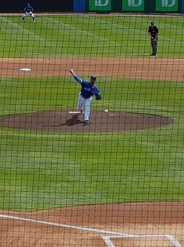 Designated hitters Kendrys Morales played only one game while we were there and had no real good pitches to hit. The other DH Steve Pearce played in three games and hit the ball really well and will help the team for sure. Two names that you should  remember, non roster player first baseman Rowdy Tellez. He’s huge, has a big swing and can hit the deep one, can move quick side to side and catch, looks to me like a really good athlete at first base.  Bet we see him before the season is over. And catcher Mike Ohlman, he’s another monster of a man who can smack the ball.  Pitching looked really good too.  Starters Marcus Stroman, Marco Estrada,  J. A. Happ and Francisco Lariano really had good innings. Aaron Loup and Ryan Tepera  had good stuff too in the middle for setting up the closer Roberto Osuna who was lights out throwing 95 mph plus.  Three of my favorite Jays players are Ryan Goins, Darwin Barney and Kevin Pillar. These guys are not as popular as the stars Donaldson, Tulowitzki, or Martin, but put out 100 percent effort in every inning I have seen them play over the last four years and sign a ton of autographs too for the fans.