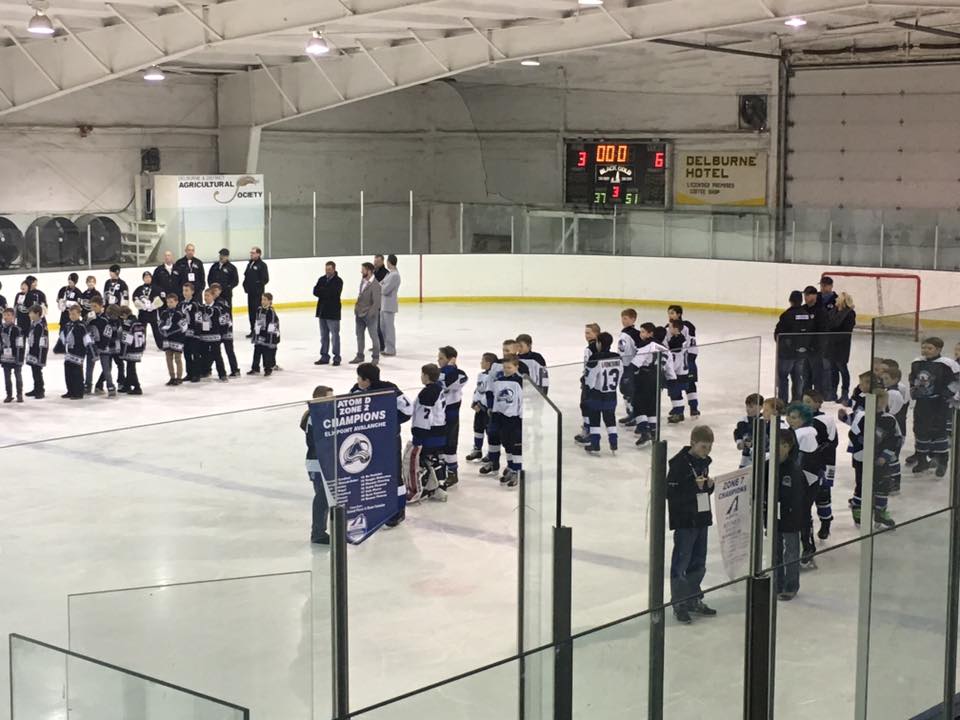 Words I’m sure can not heal the pain the little Atom Avalanche players, coaches and parents must have felt when they lost in the semi final game this past weekend in Delburne,. Especially after coming back from down two goals in the third period to tie the game only to lose in overtime. But just getting to the semi finals is quite an accomplishment.