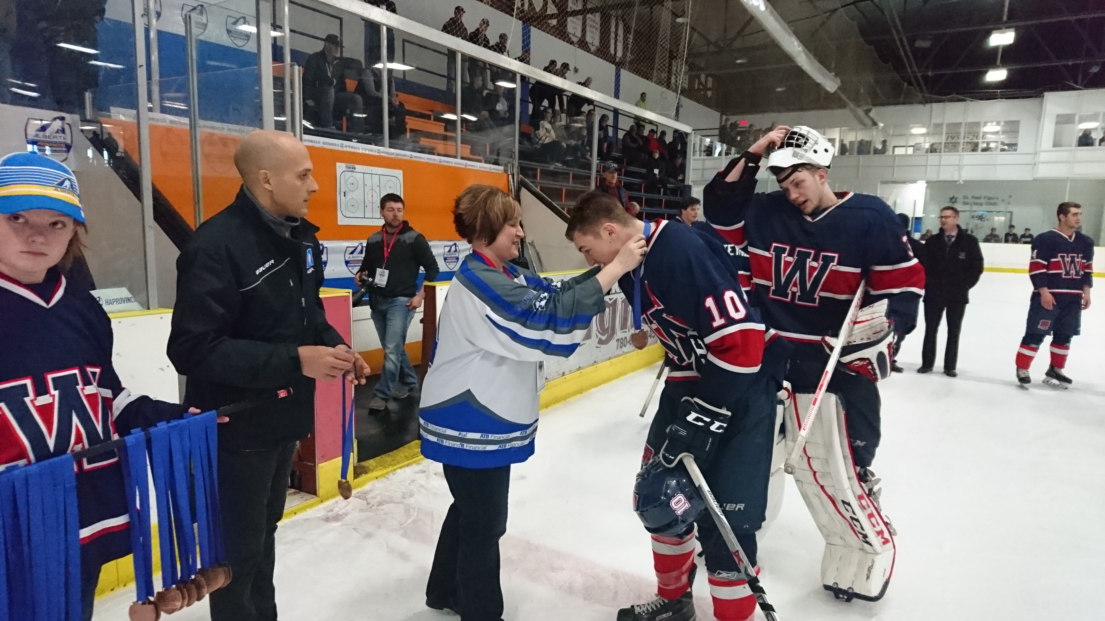 The Wetaskiwin Icemen were handed a defeat in the semis by the Wainwright Bisons. That meant they headed to the Bronze Medal game against the Calgary Rangers. The Icemen had thumped the Rangers 10-0 in their round robin game earlier in the weekend. Wetaskiwin would shut out the Rangers once more to win the bronze. Final score for the Iceman was 4-0.