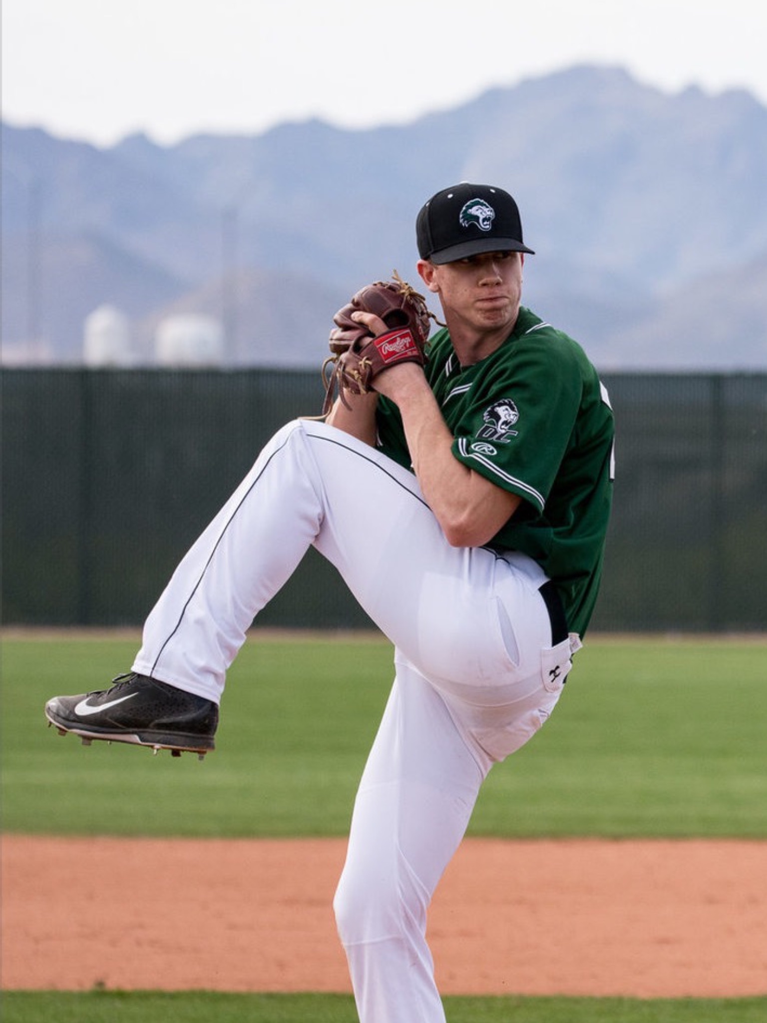 “My plan right now is, I’m at 190 pounds, to get to 200-210 when I go back to college. With that comes more velocity and being a stronger pitcher on the mound.” Nazarchuk says, ” So right now I’m doing strength and coniditioning in Vermilion. Our coach at school gave us a program to follow. I’ve started a weighted ball exercise to increase velocity over [the next few] months.”