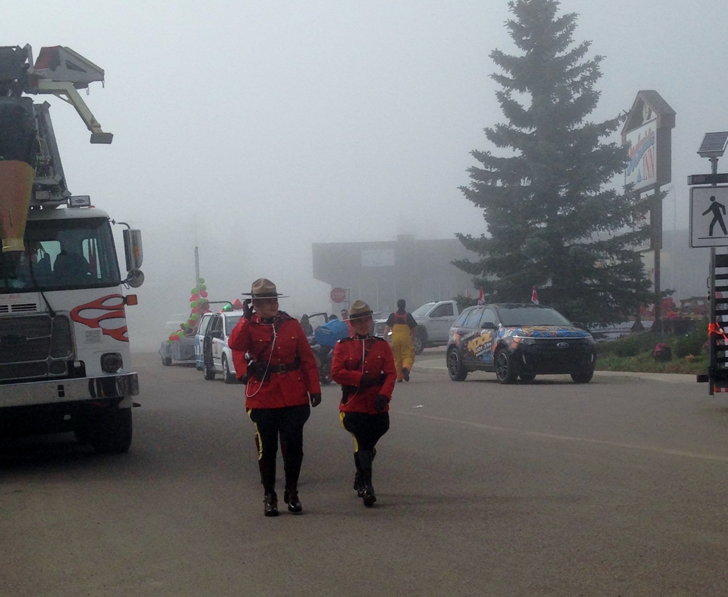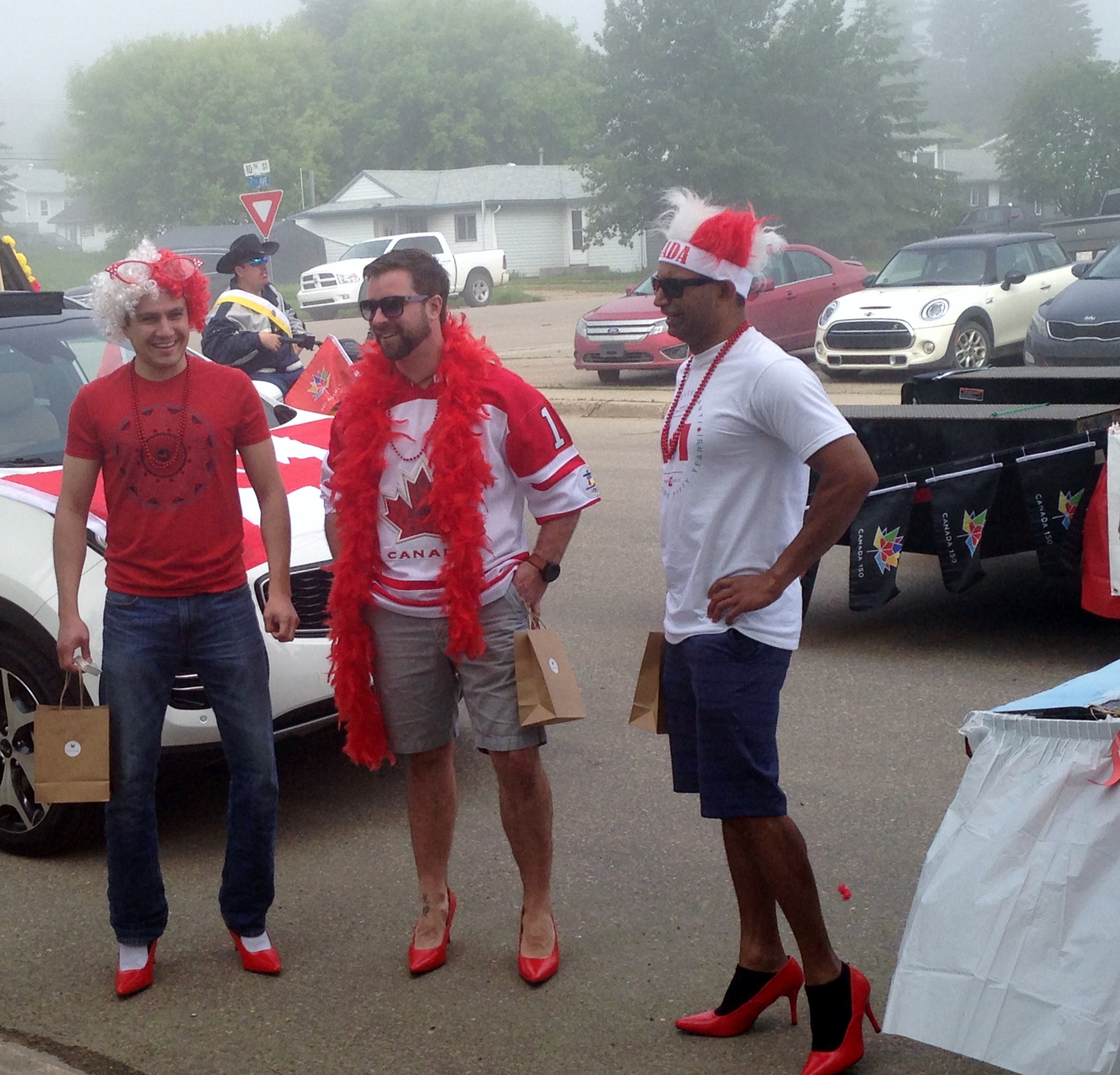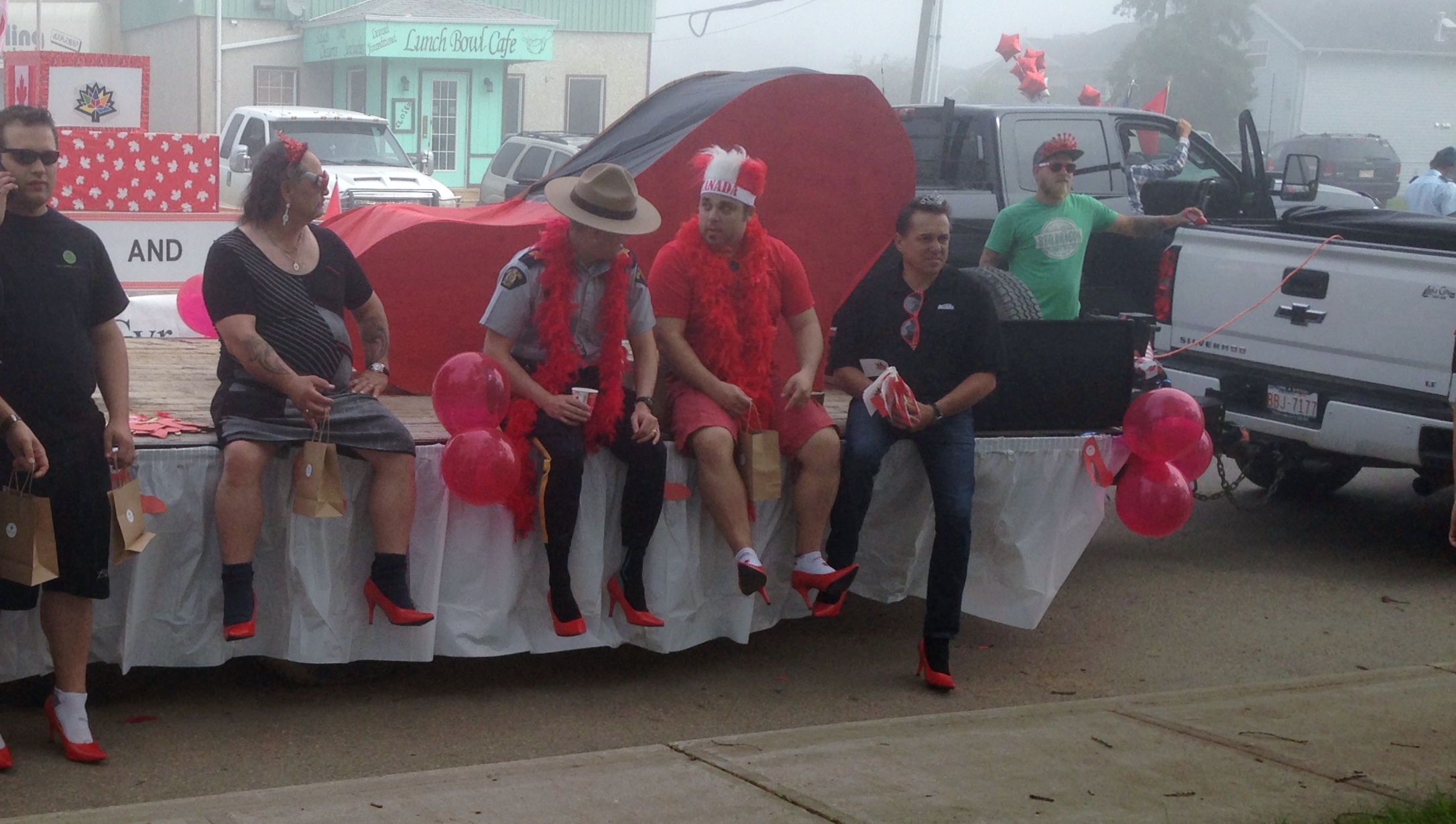 The day started with a very well attended parade at 10:00 am under some fog. The parade was extraordinarily special, as it included Walk a Mile in Her Shoes. A fundraising and awareness campaign in which males wear red high heels to display their support to end violence against women. Among those walking the parade route in heels were Mayor of Cold Lake, Craig Copeland and S/Sgt of the Cold Lake RCMP Detachment, Jeremie Landry.
