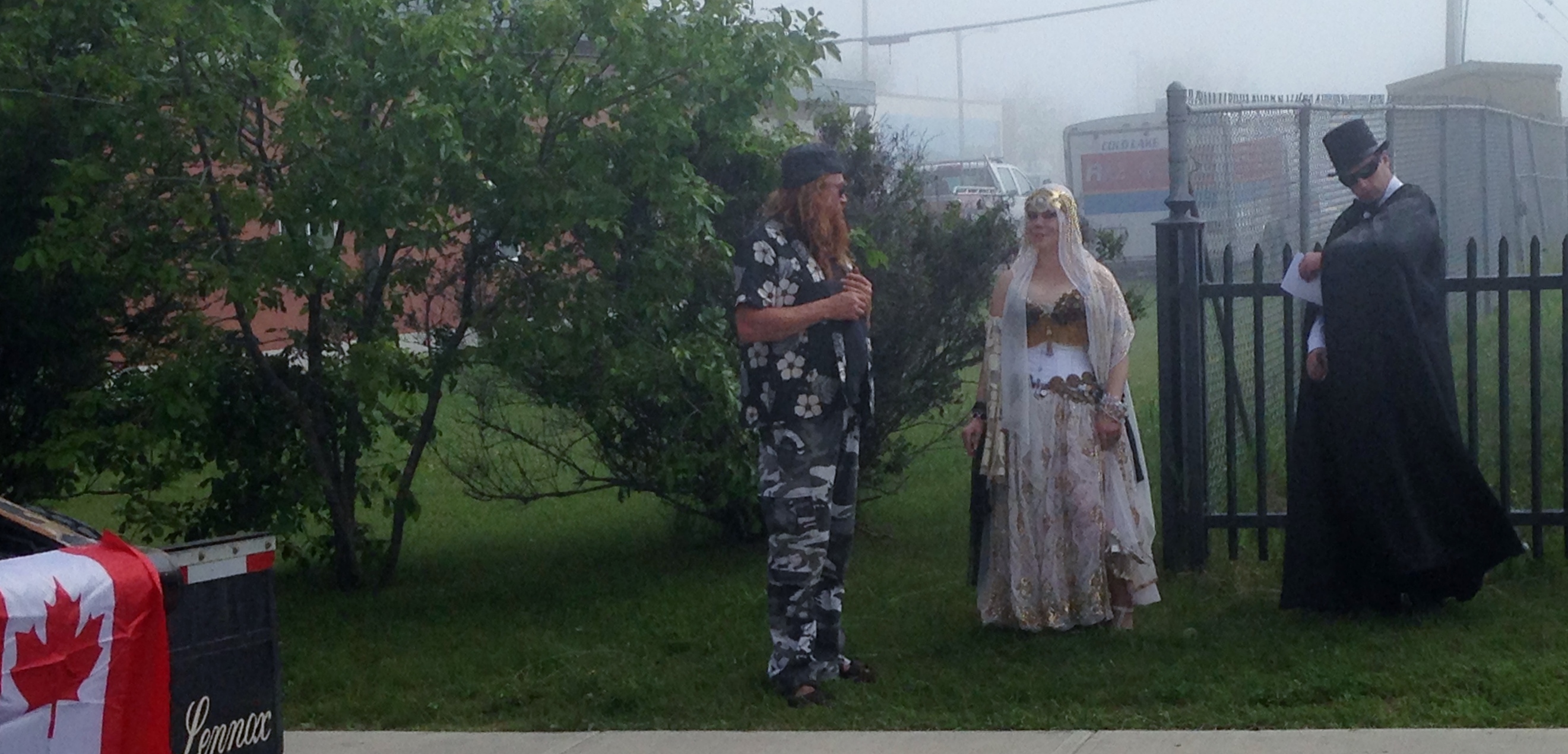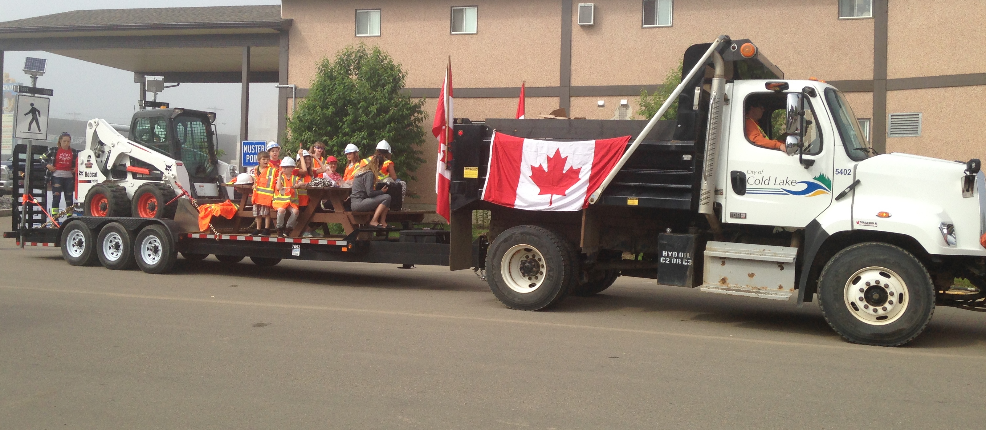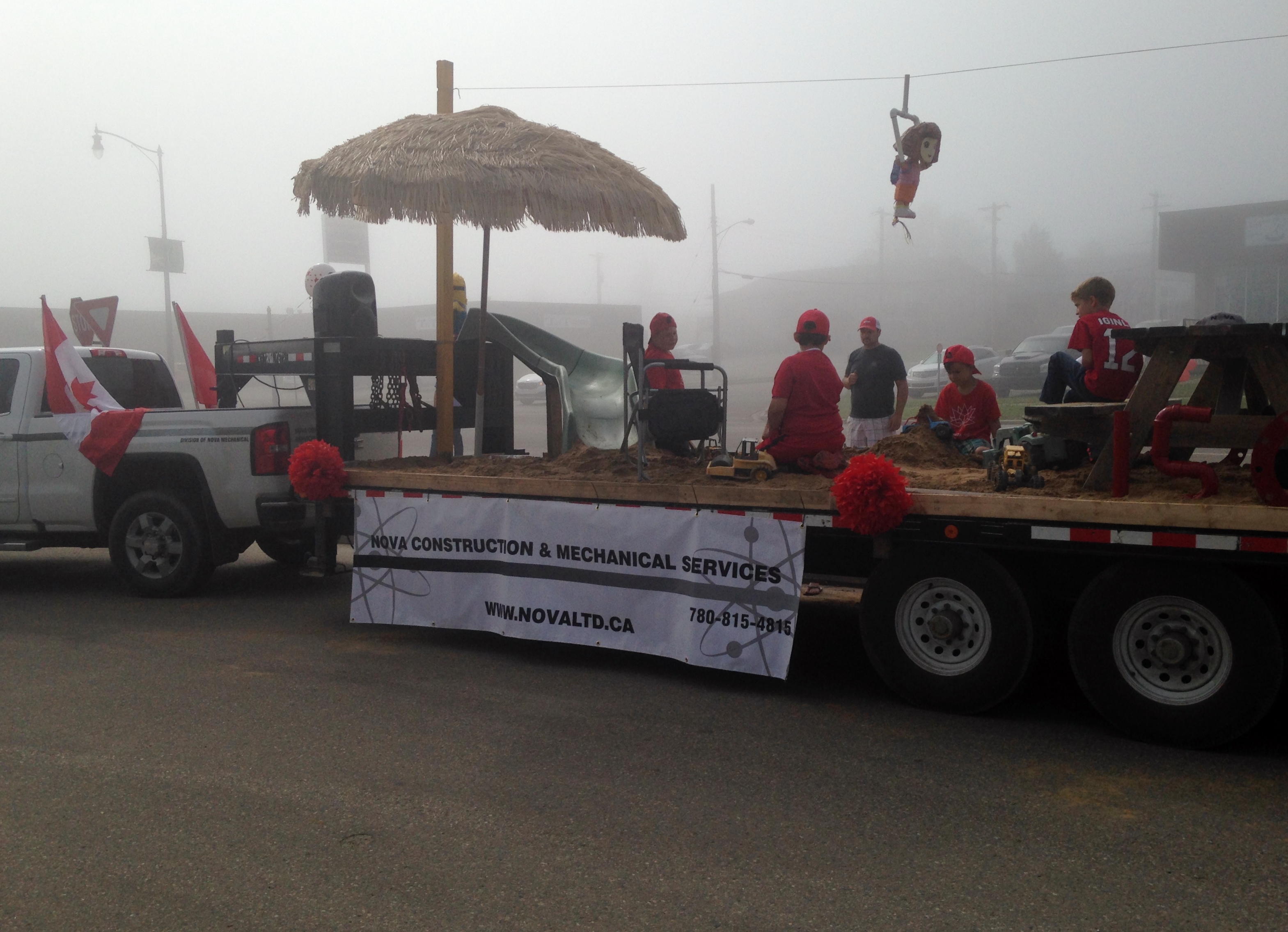 The day started with a very well attended parade at 10:00 am under some fog. The parade was extraordinarily special, as it included Walk a Mile in Her Shoes. A fundraising and awareness campaign in which males wear red high heels to display their support to end violence against women. Among those walking the parade route in heels were Mayor of Cold Lake, Craig Copeland and S/Sgt of the Cold Lake RCMP Detachment, Jeremie Landry.