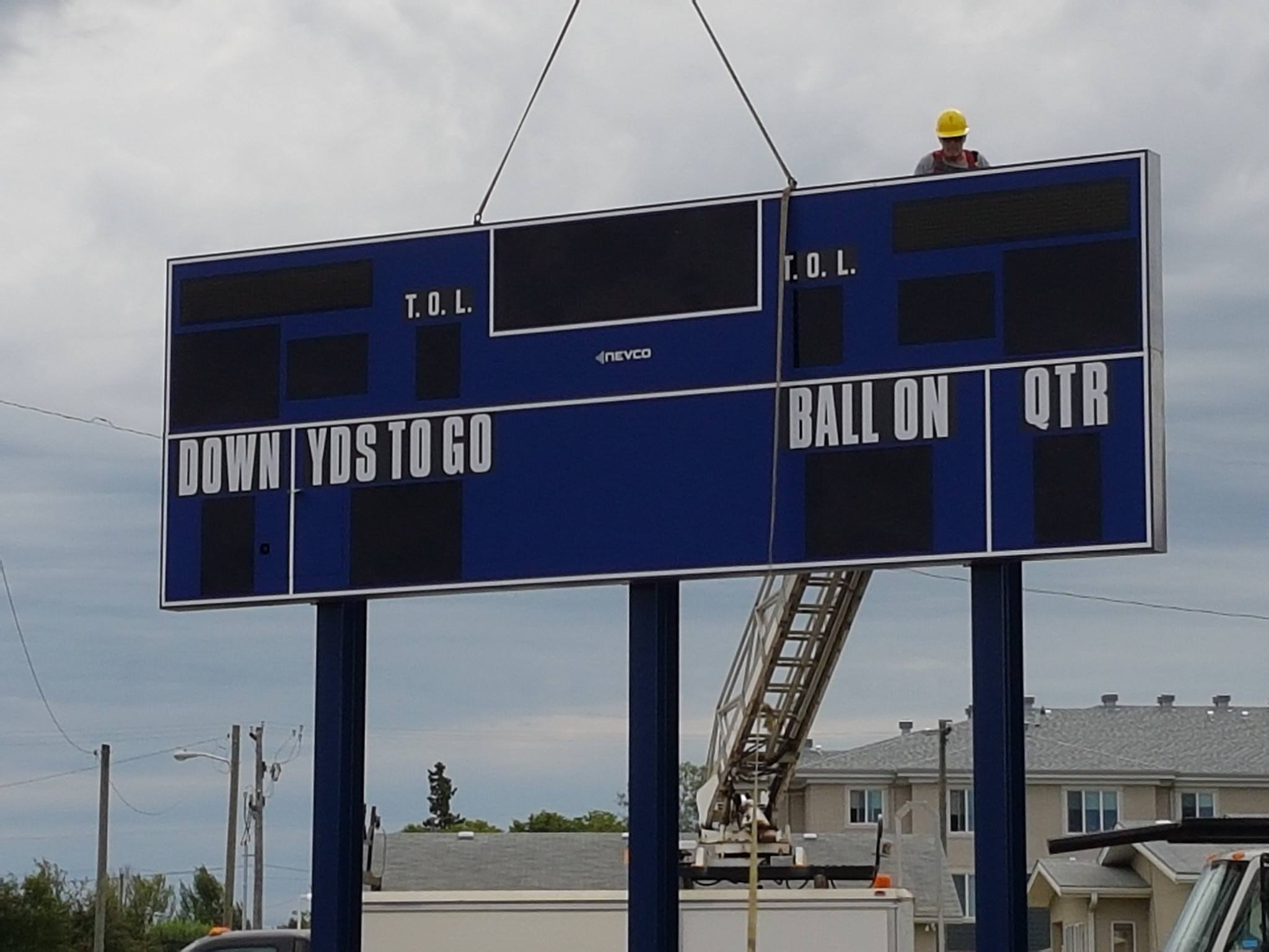 “On the track we have some finishing up to do around the jumping pits. Only about ten percent on that. We’ve got a liner that is coming from Asia. He’s here on Sunday to start lining the track. The track probably has about ten percent left to do. The field, we’re one hundred percent on the base. We’re probably 5% on the turf. When they do the turf, it’s a five yard pnael they have to glue, and sew together. Once they sew and glue it together, and the whole field is placed, and the logos are in. They then make four foot sections, and make 21 passes on each section. There’s about 20 days left on that. We are looking at weekend of September 8th.” Jubinville explains.