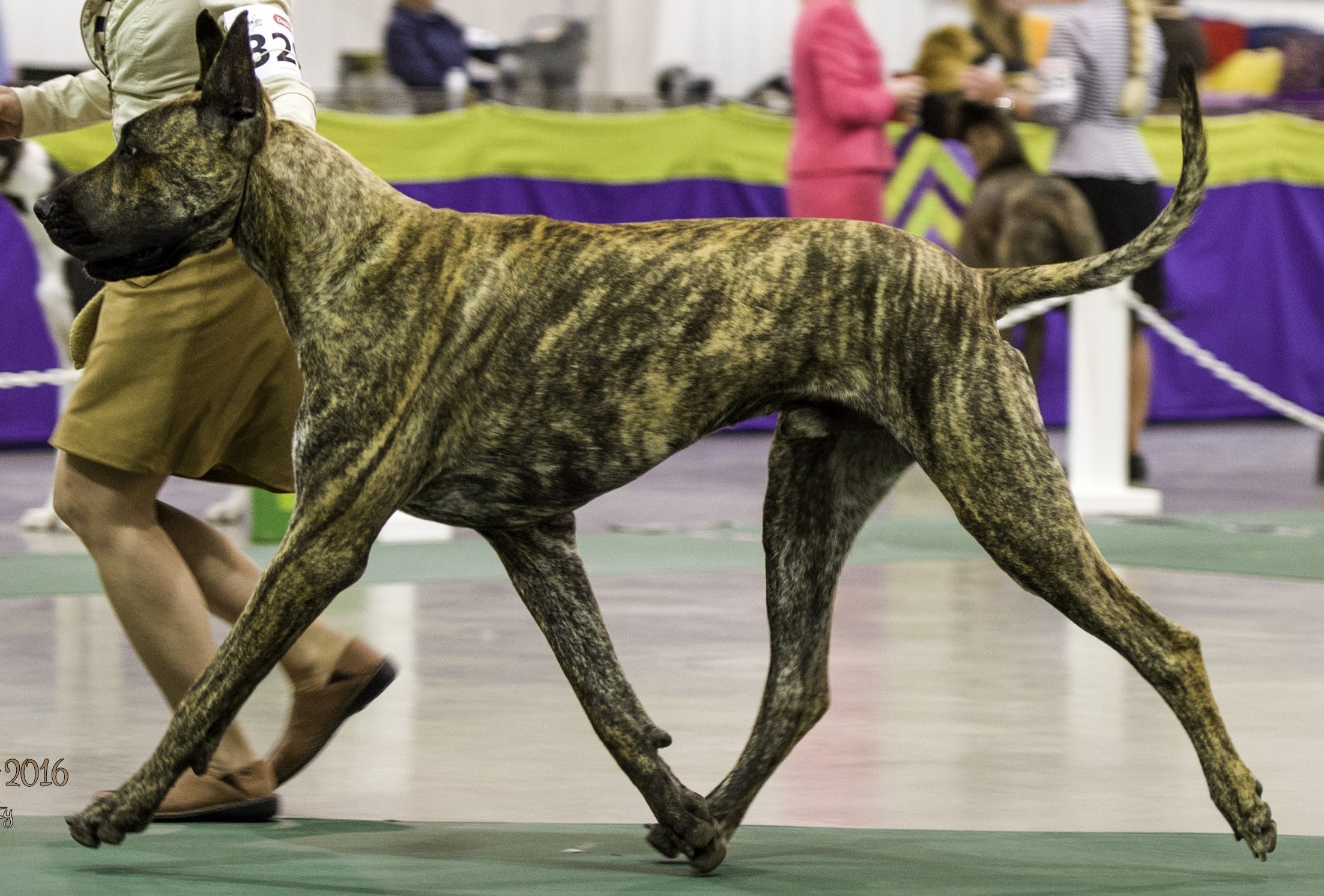 - Tall, intact, brindle male with a black muzzle
