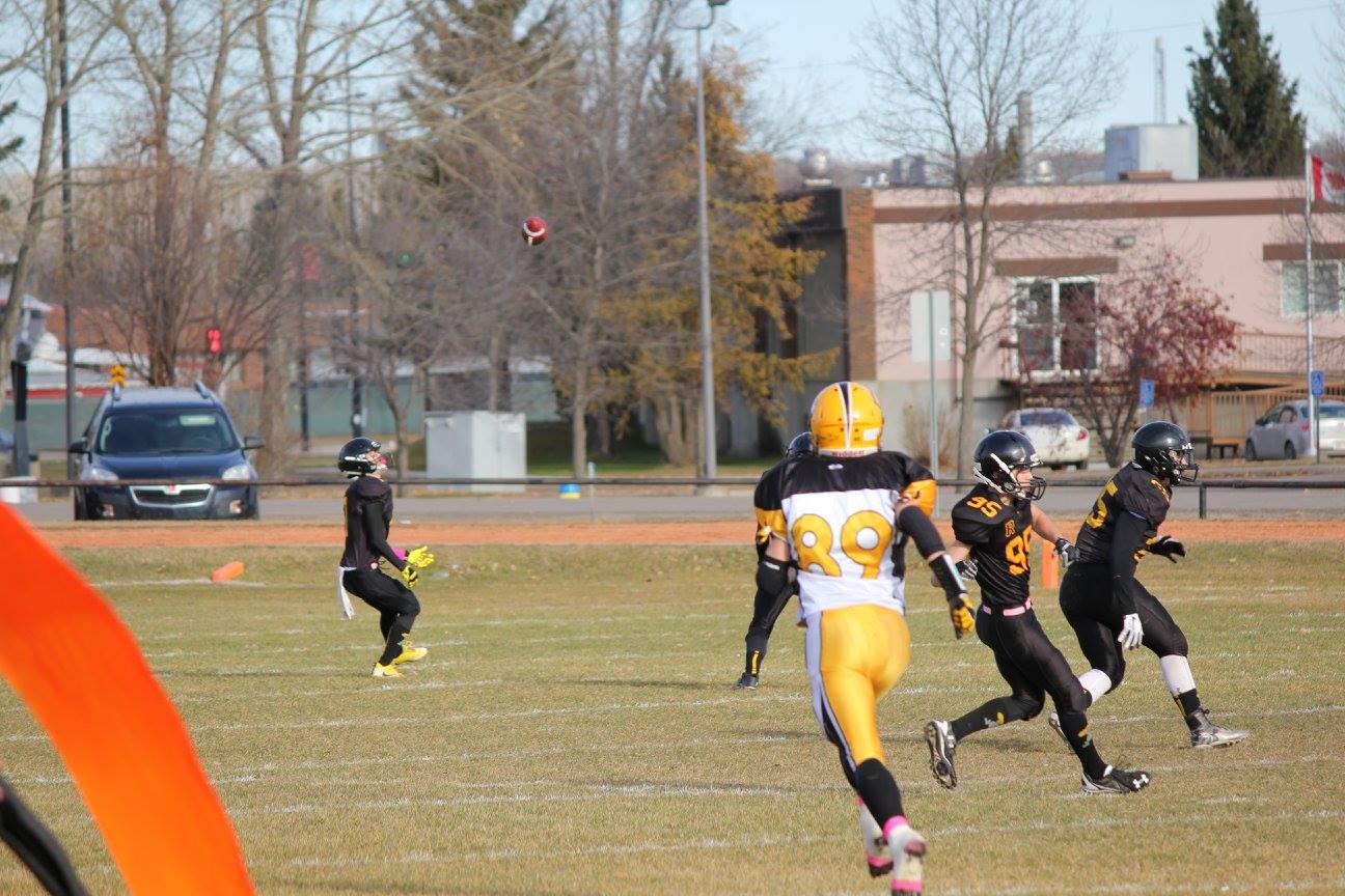 The team had fun all the way to the buzzer, when they took the game 21-17 over the Commandos. The whole team came together for the win, says Johnson. There were a few stand out players, “both Aiden Harrison and Matt Delorme had awesome games running the ball, they played their hearts! Nathan Roberts had a couple of huge game saving tackles on Defence!”
