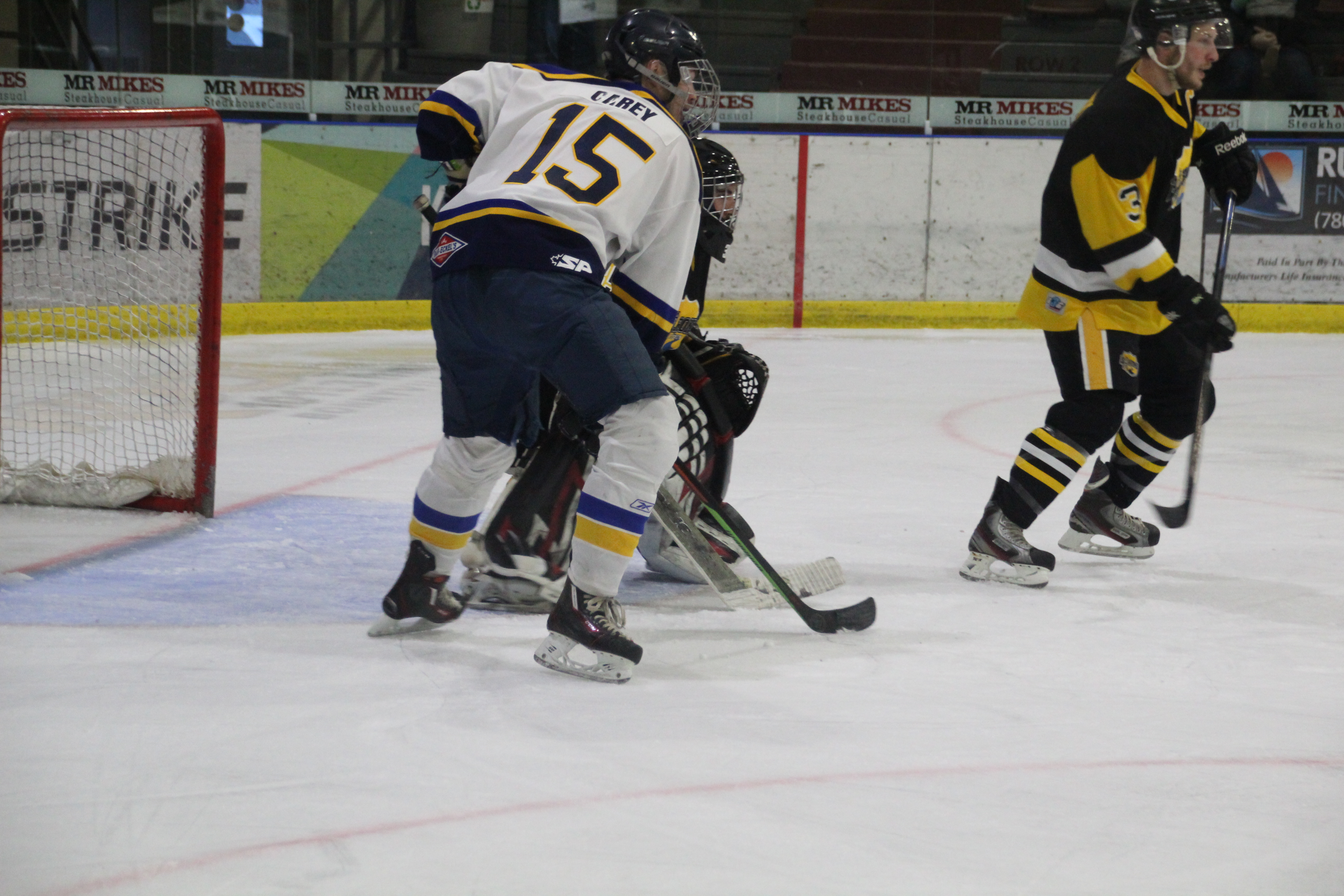 “The second period, I’m sure the fans can tell you, was pretty bad to watch,” Coach Paice says it was hard as a coach to watch the team give up 20 valuable minutes. The Barons put in three unanswered goals during the second and another goal to start the third to take the lead, 5-3. “The guys dugged deep and came back,” the Seniors had to put everything they had into the last seven minutes of play to secure tie it up and force extra time. Troy Dumais and Denis Cadrin put in the tying goals.