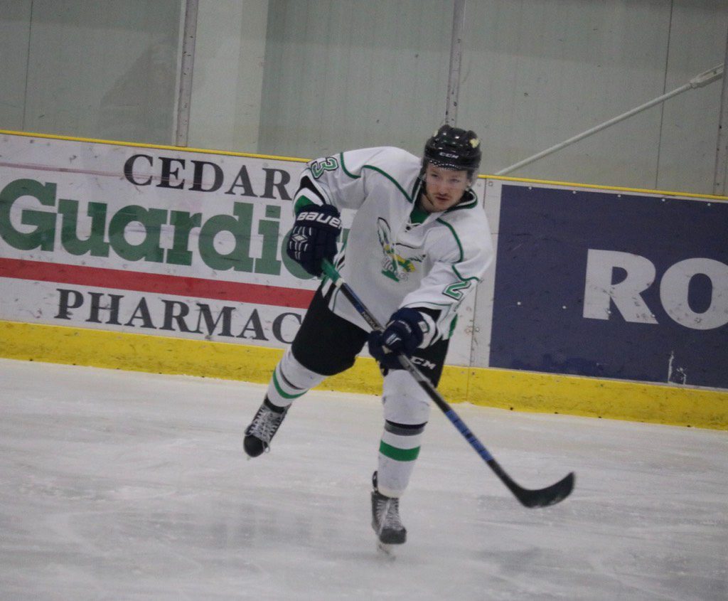 - Michael Cardinal (#14) had a three-point night with a goal and two assists, including an assist on the game-winning goal. – Photo submitted by Russel Quinney