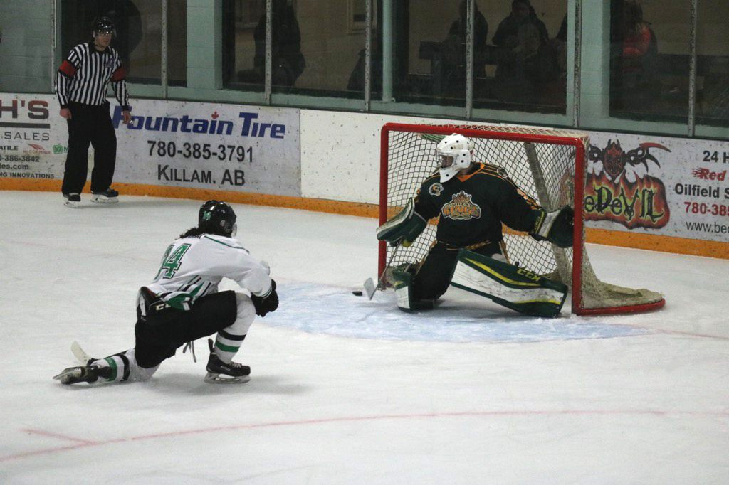 On Monday night, Frog Lake owned the game from start to finish. They began the first period on a power play due to Killam not evacuating the ice fast enough after warm up. Frog Lake scored on the power play, giving them an early lead and setting the tone for the rest of the night.