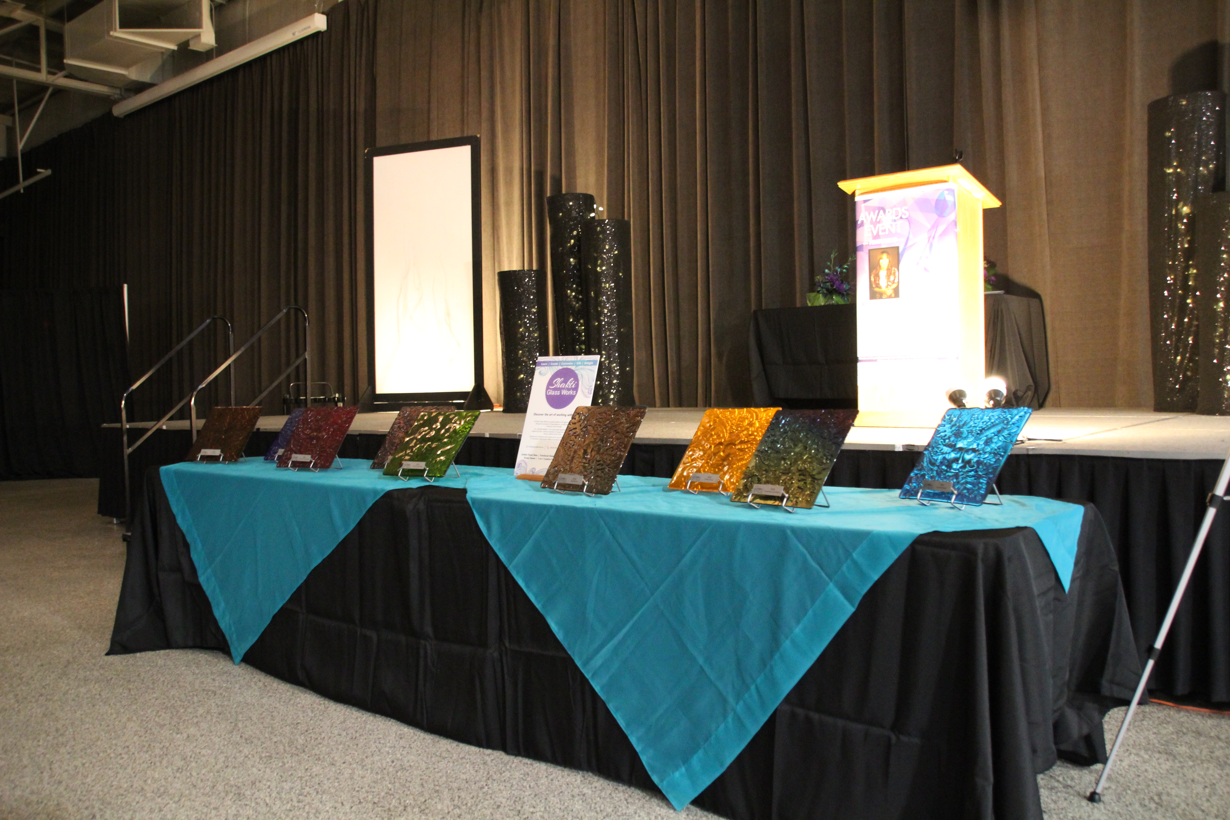 The awards were handcrafted glass creations, made by Cathy Aust of Shakti Glass Works.