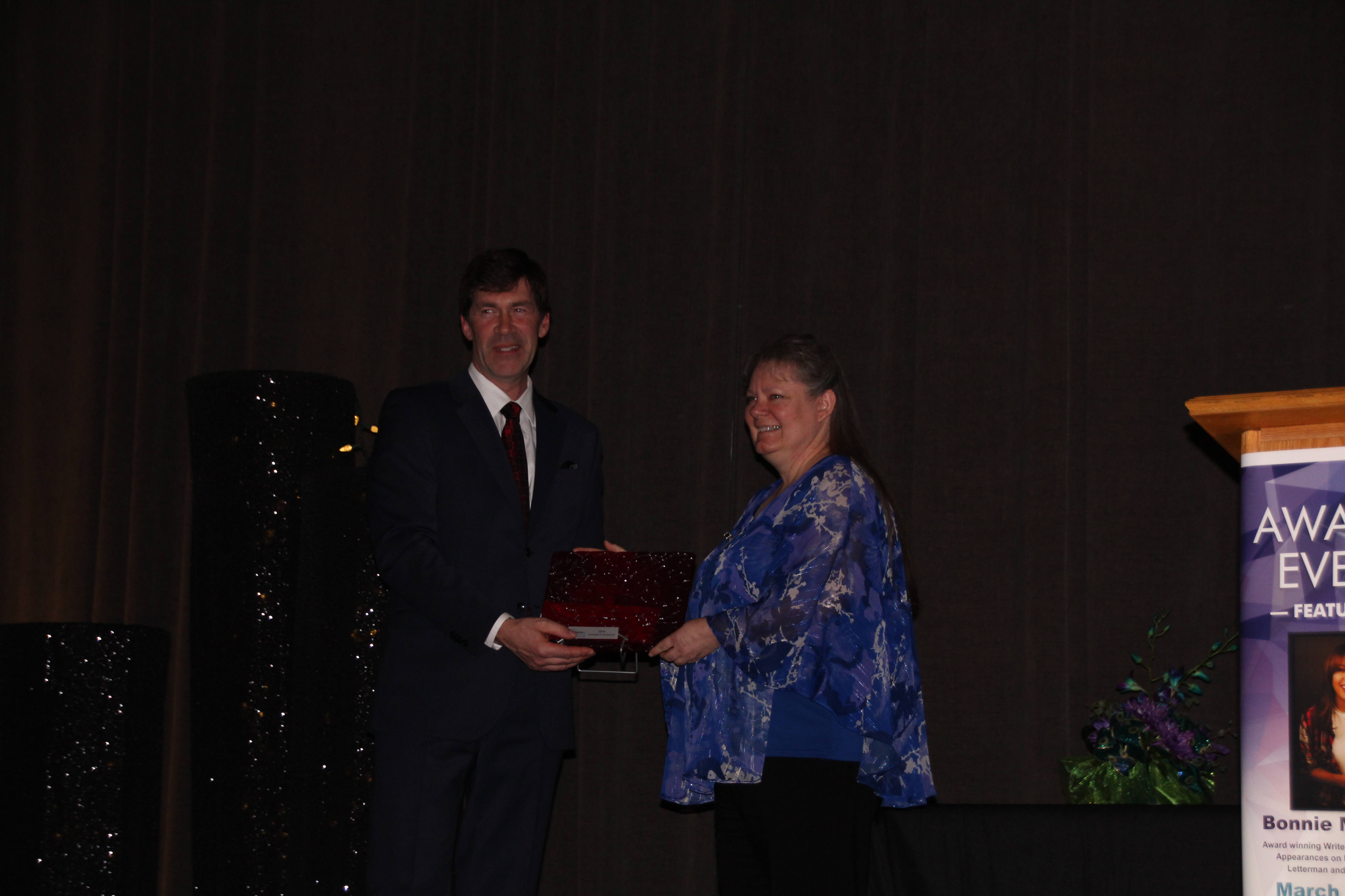 The awards were handcrafted glass creations, made by Cathy Aust of Shakti Glass Works.