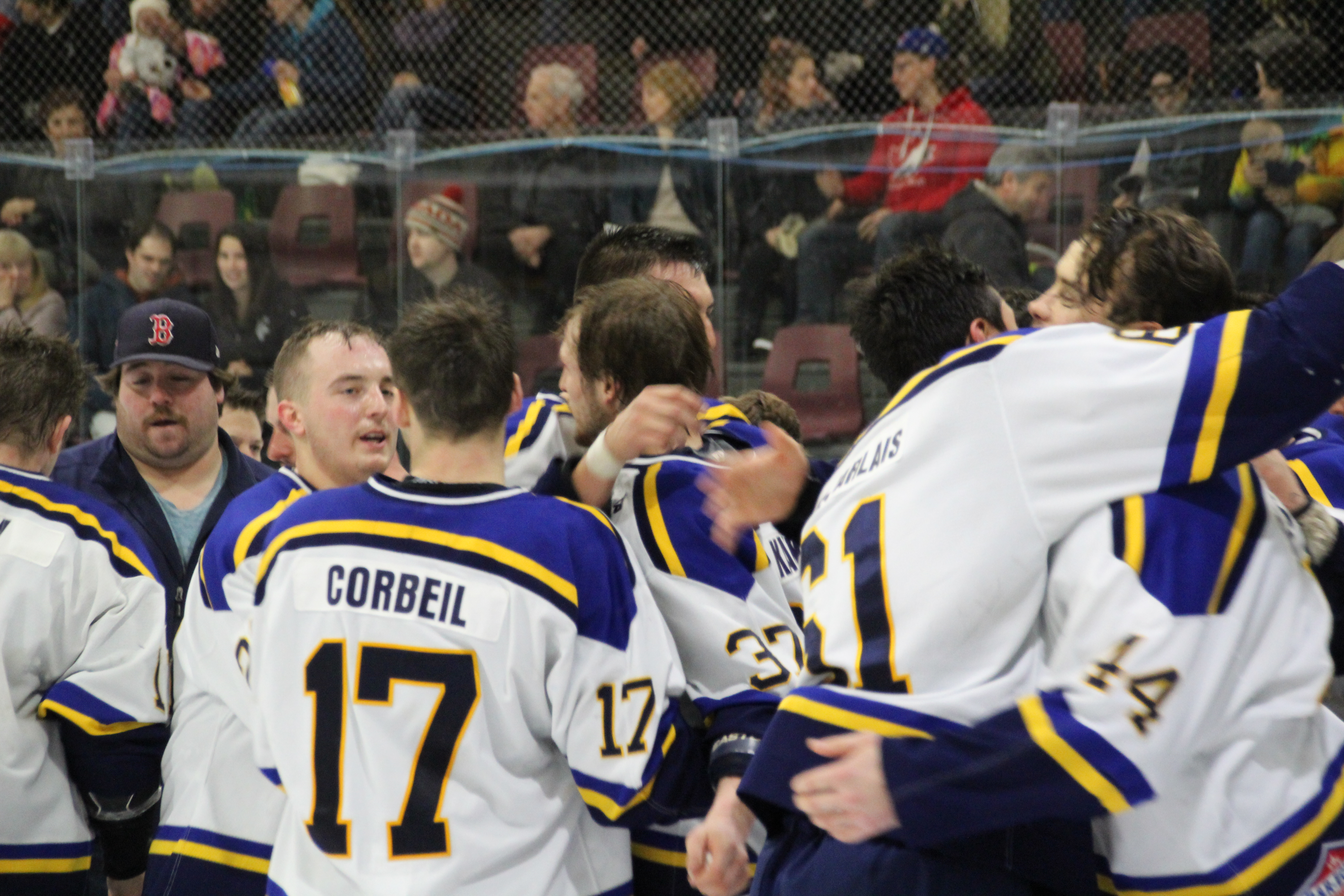 In the final period of the play, the Pontiacs put another goal in. This time from Ty Carey. Game over, 6-2 final. Pontiacs in the gold.
