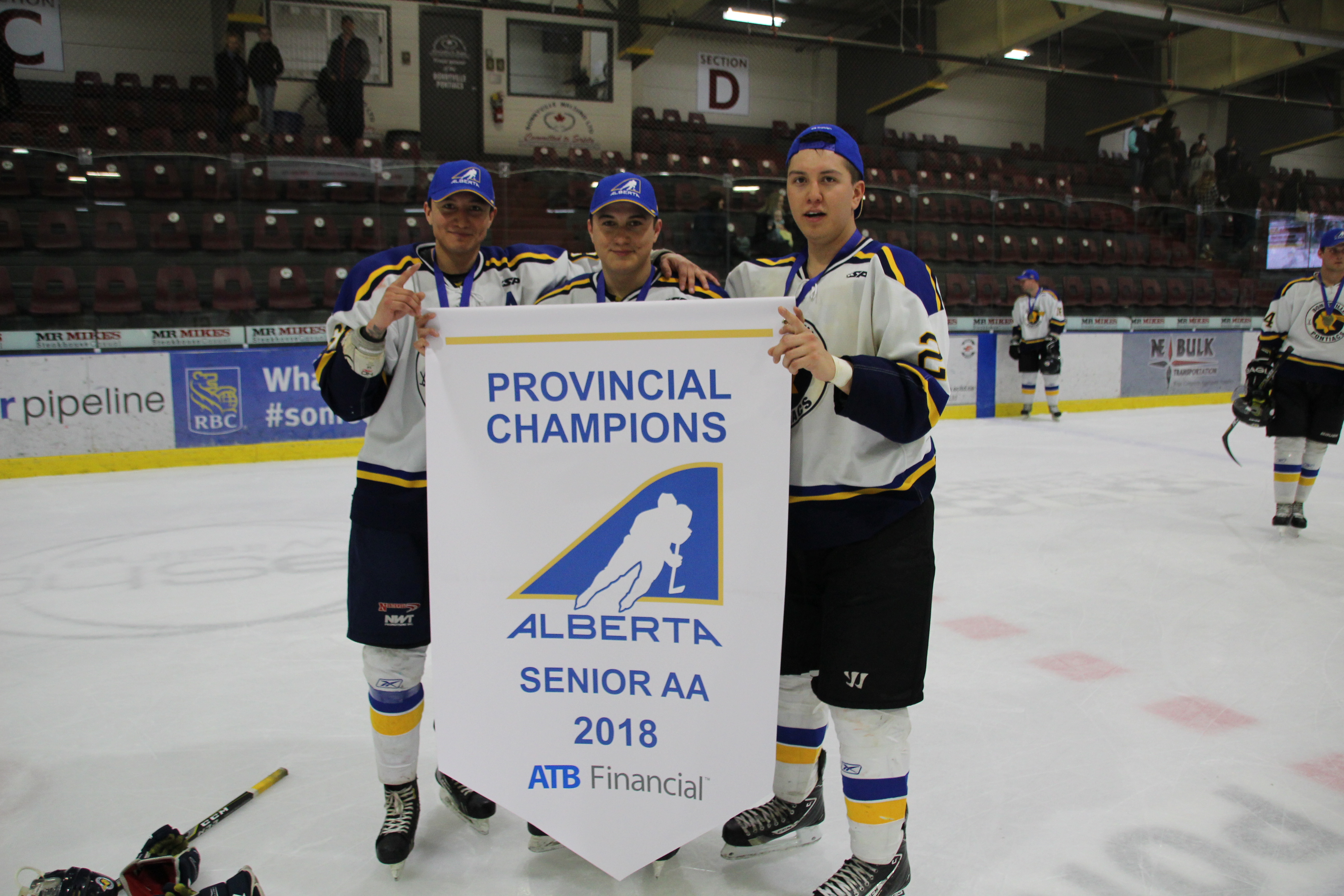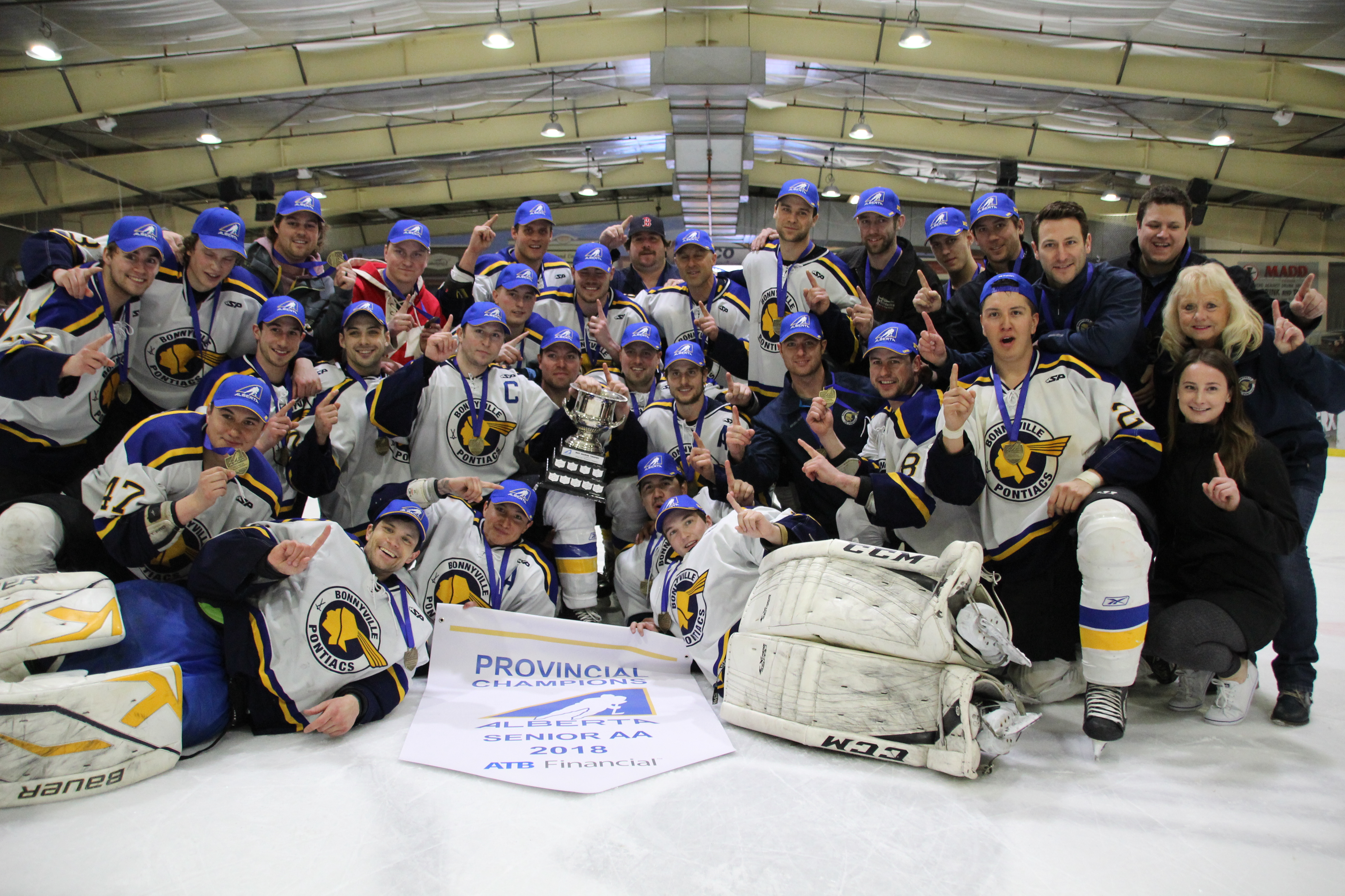 The Sr. AA Pontiacs are provincial gold medalist! The team played host to the Alberta AA Men’s Hockey Provincials over the weekend and after winning the round robin, secured a spot in the gold medal game; the team captured the win with a 6-2 final over the Elk Point Elks.