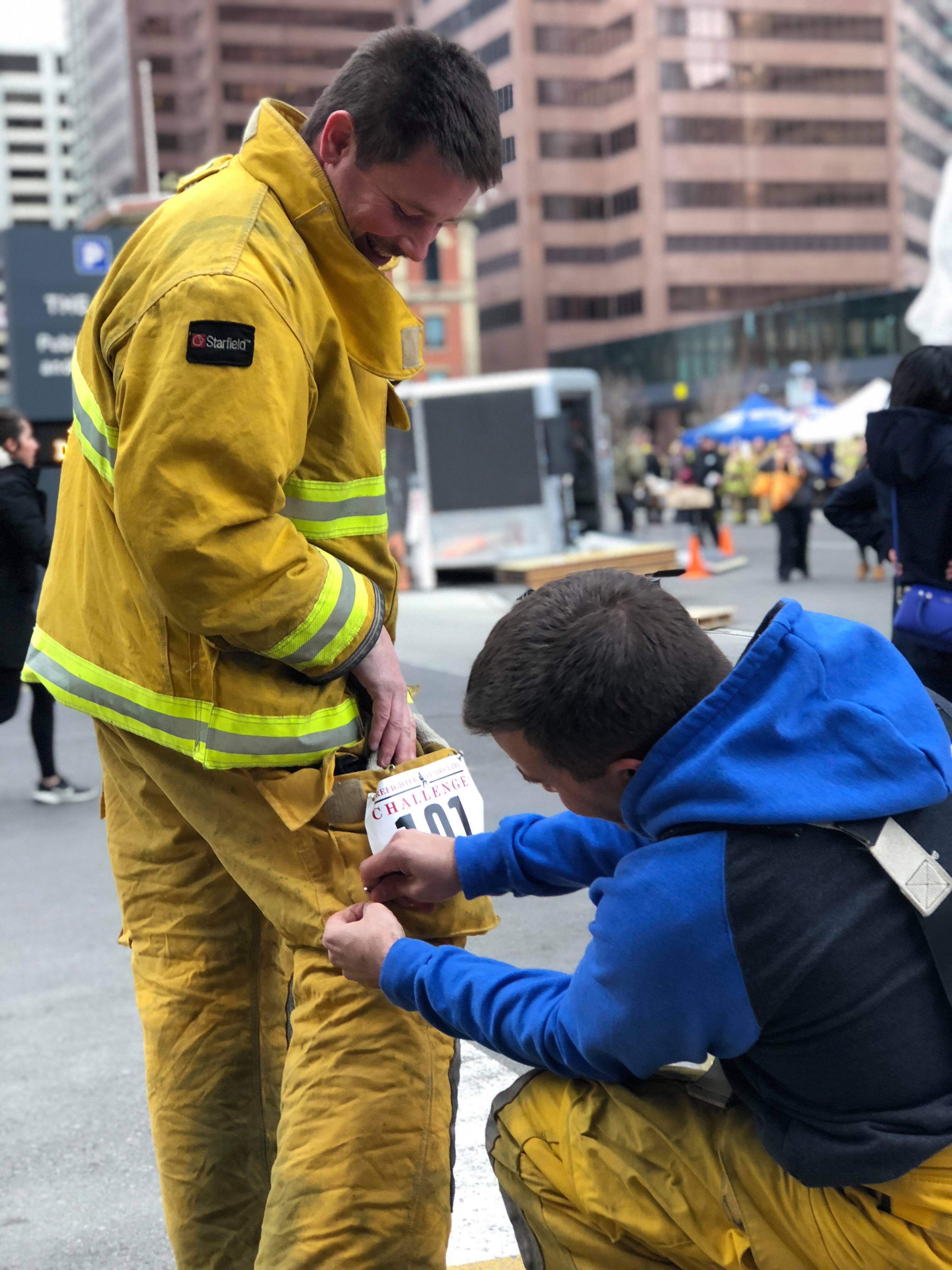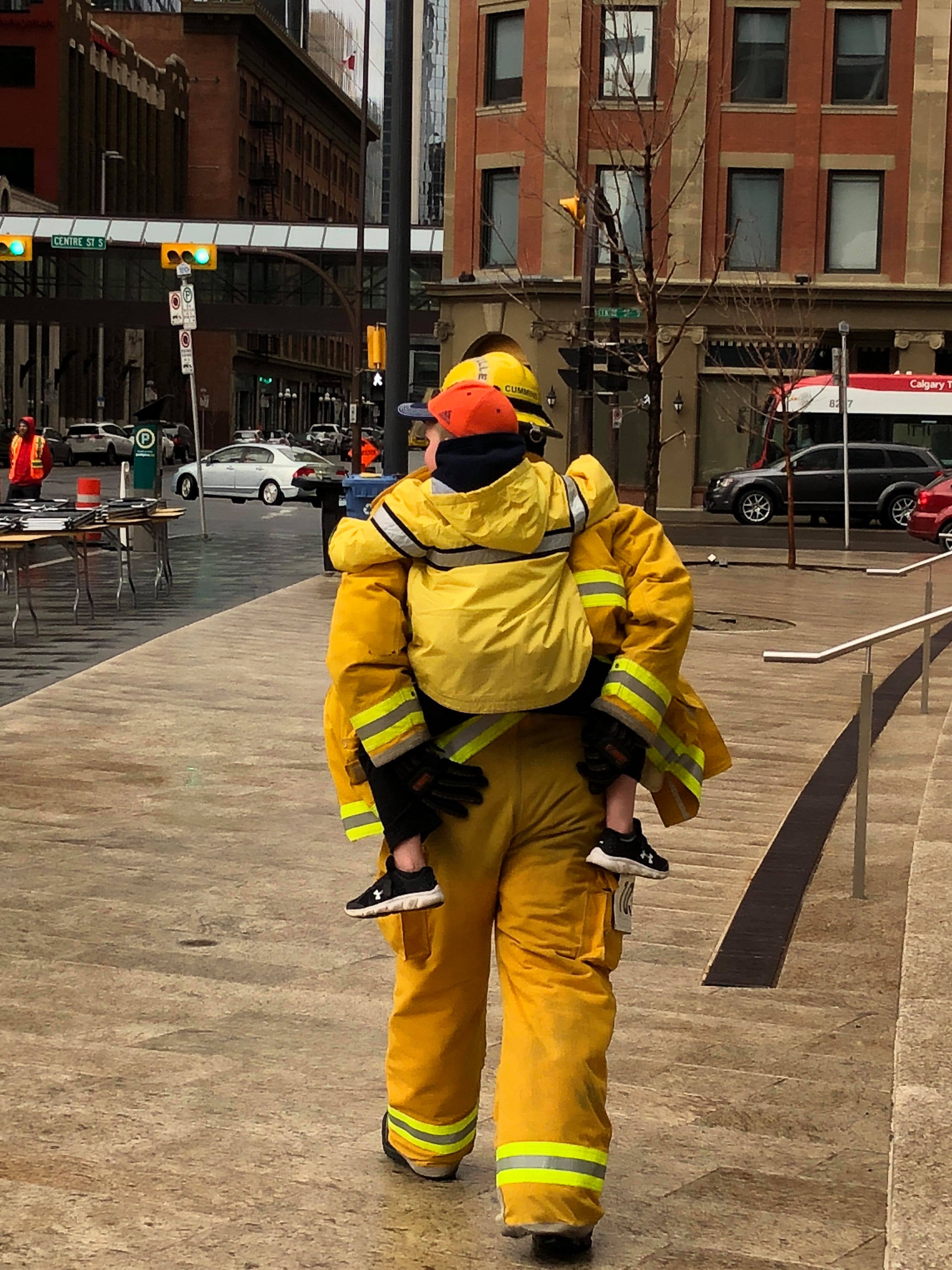“I am a very proud firefighter’s wife every single day, but I have never been as proud as I was on Sunday. Not only proud of my husband, but of the entire team that went up the Bow. They all went in together, they all came down together, and they were all so proud of each other throughout. Climbing 55 flights of stairs in full gear takes guts, and guts is what our guys and gal had. Seeing the comradery really is something special. They’re like a family. In the two years my husband has been with Station 5 we’ve gained a whole new family. For myself, some of my best friends are firemen’s wives. We have a common bond through our heroes and I can’t imagine life without them now,” said Kayla, Blanchette’s wife.