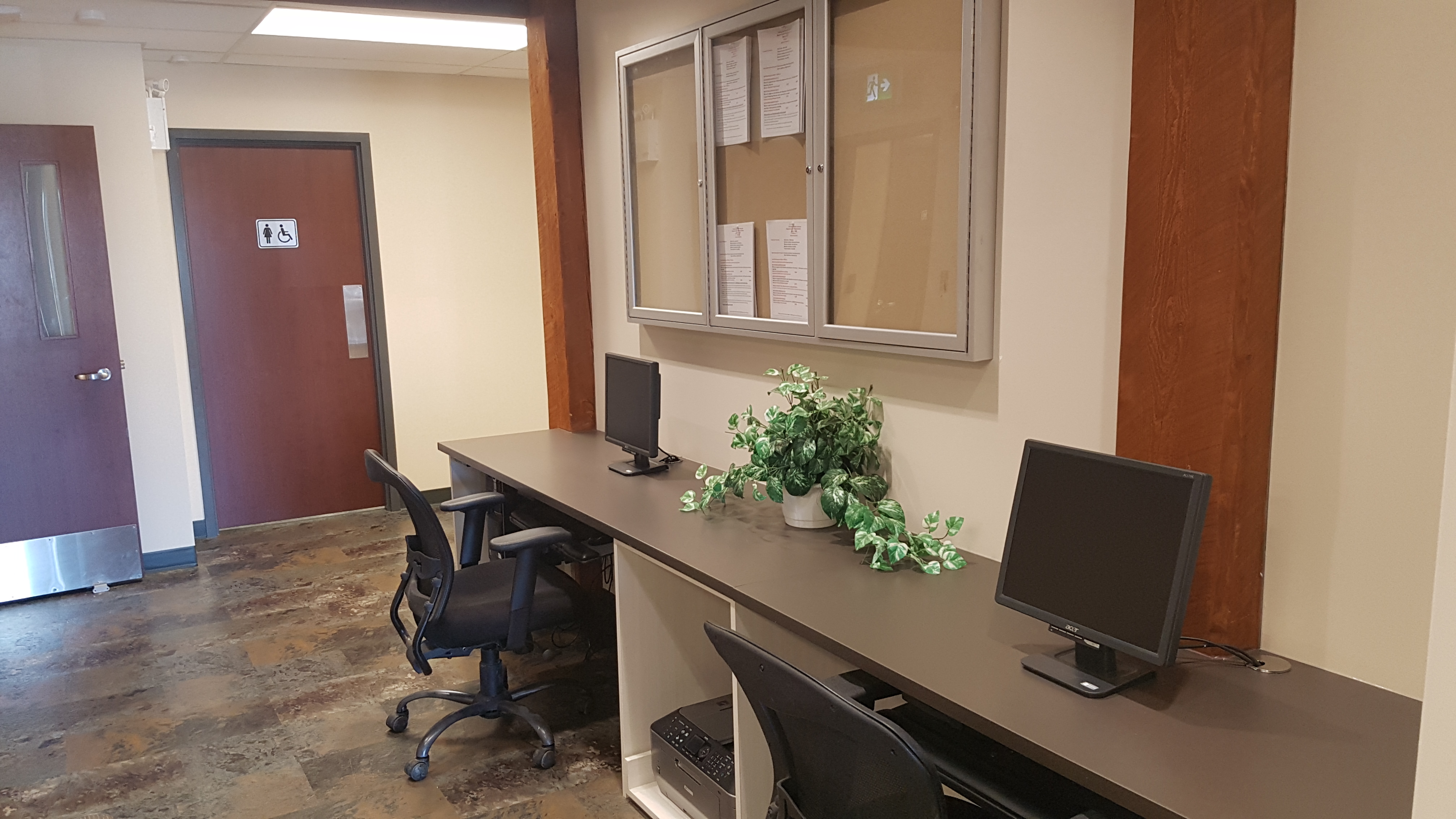 The building is accessible to the membership, that was one of the main goals in the design. There is free use of the computer kiosk with wifi. As well as two large meeting rooms that can expand into one larger room.