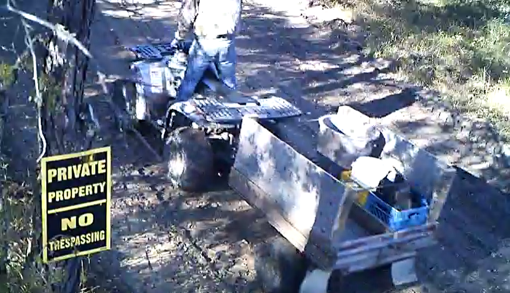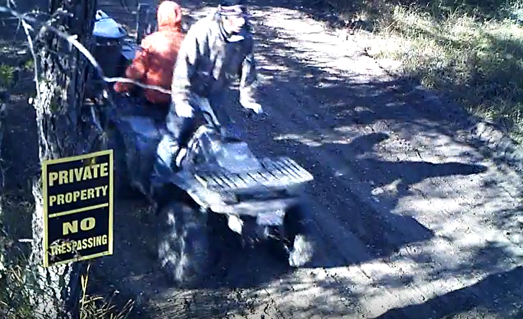Two male suspects entered the residence and stole two laptop computers and one circular saw. The suspects were caught on trail cameras, were seen entering and leaving the property on a quad.