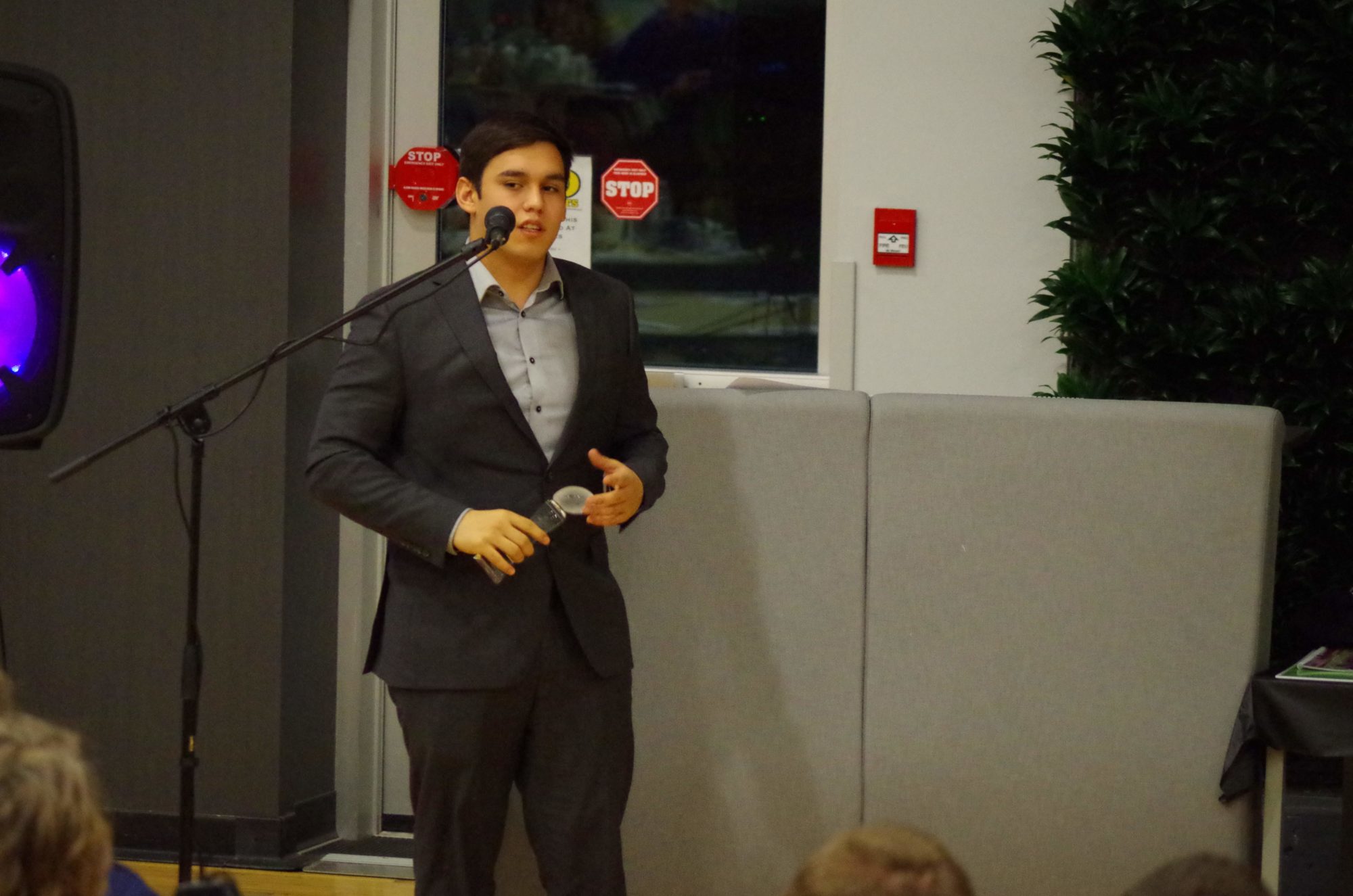 Voyageurs coach Larry Godziuk, left, and player Kohen Fraser-Marks, right, at the awards banquet Dec. 6.
